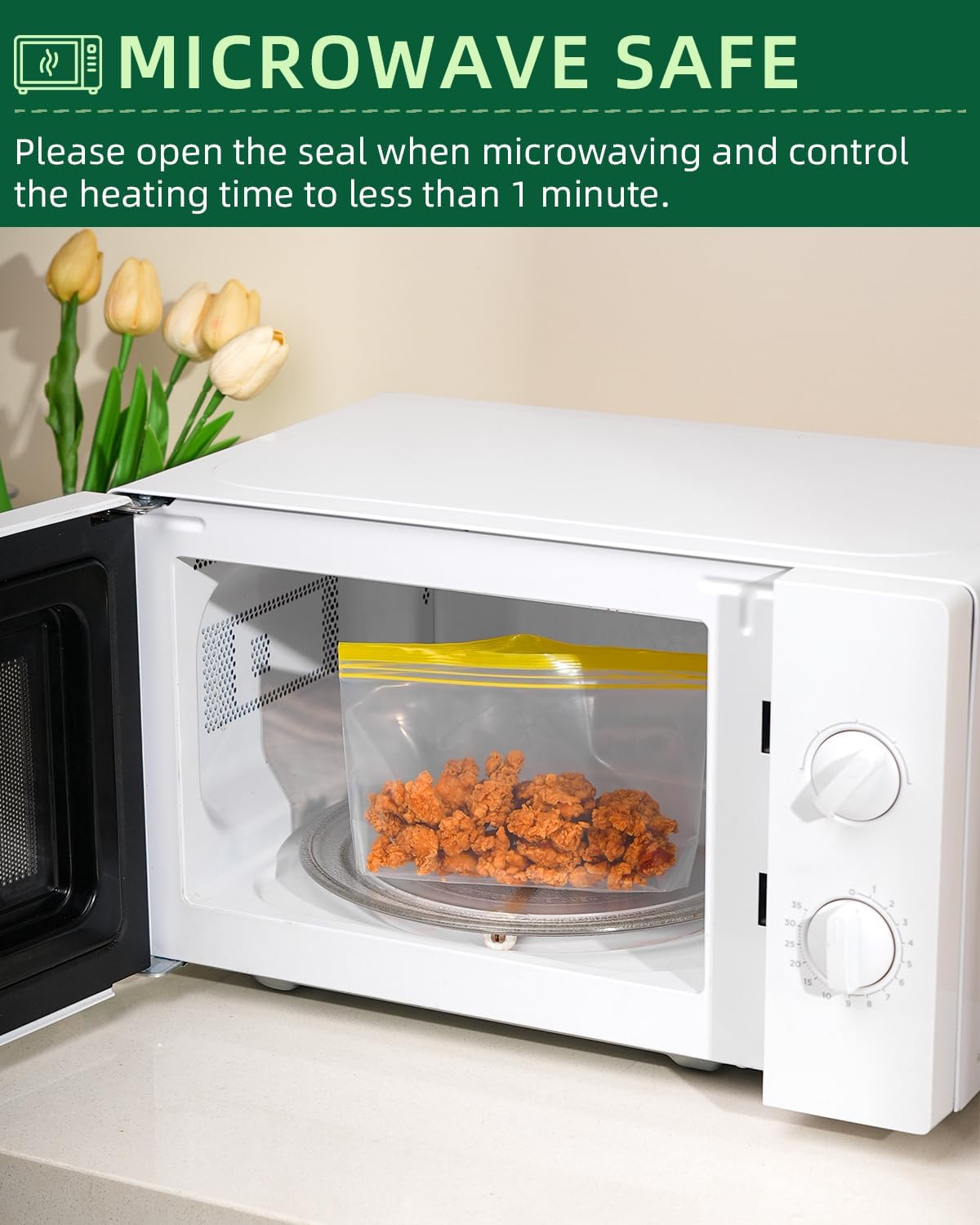 - [FREEZER & DISHWASHER SAFE, MICROWAVE FRIENDLY] Thanks to innovative upgrades to materials, our reusable food storage bags are dishwasher safe and freezer safe. Simply turn the reusable bags inside out and put it in the dishwasher for easy cleaning. They prevent your food from freezer burn while preserving its flavor, perfect for freezing meat, fish, shrimp, and vegetables. Please allow steam to escape when microwaving and don't microwave for more than 1 minute.