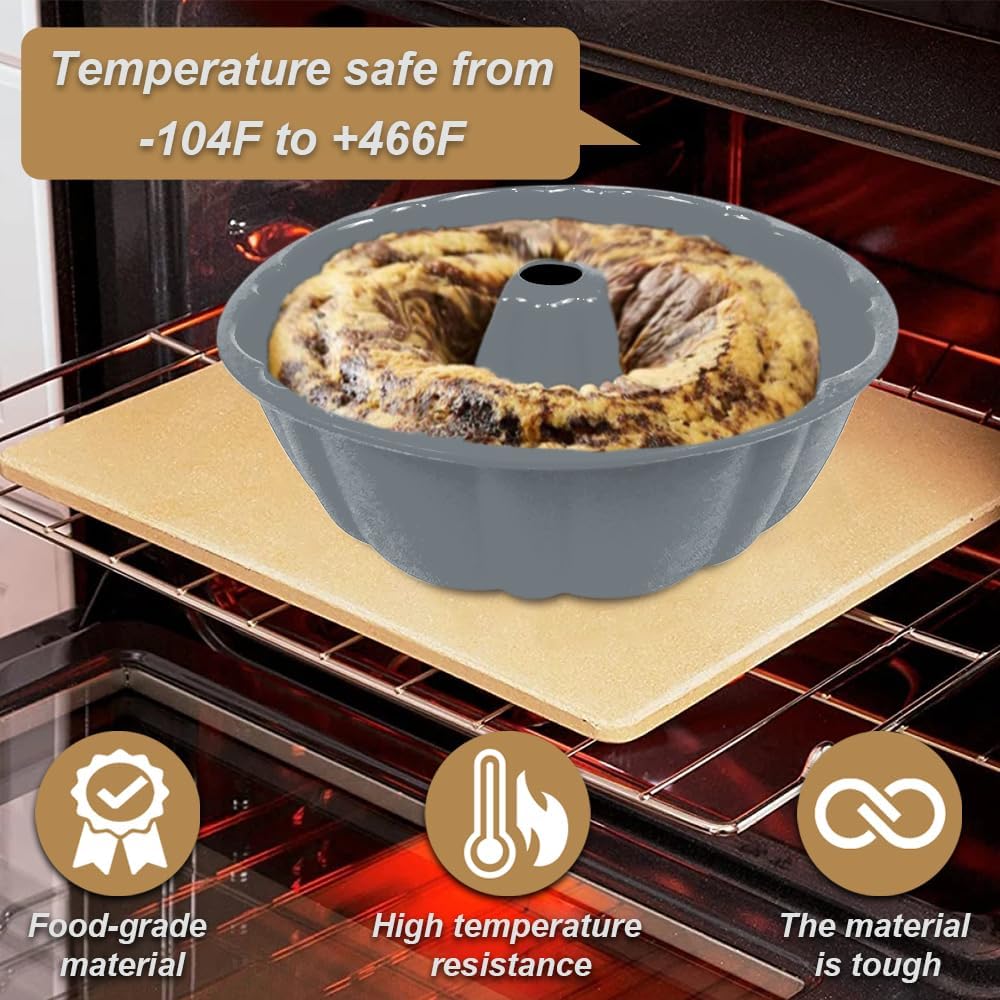 10 inch Silicone Bundt Cake Pan, Non-Stick Silicone Fluted Pans, ome Baking DIY Cake Mold for Cake, Jelly, Bread, Chocolate, Para Gelatinas (Red) (Grey, 1 Pack)