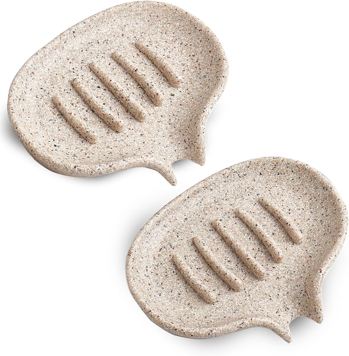 2 Pcs Soap Dish with Drain- Self Draining Bar Soap Holder for Shower, Large Resin Soap Savers Soap Tray Sponge Holder for Kitchen, Bathroom, Bathtub Sink, Linen