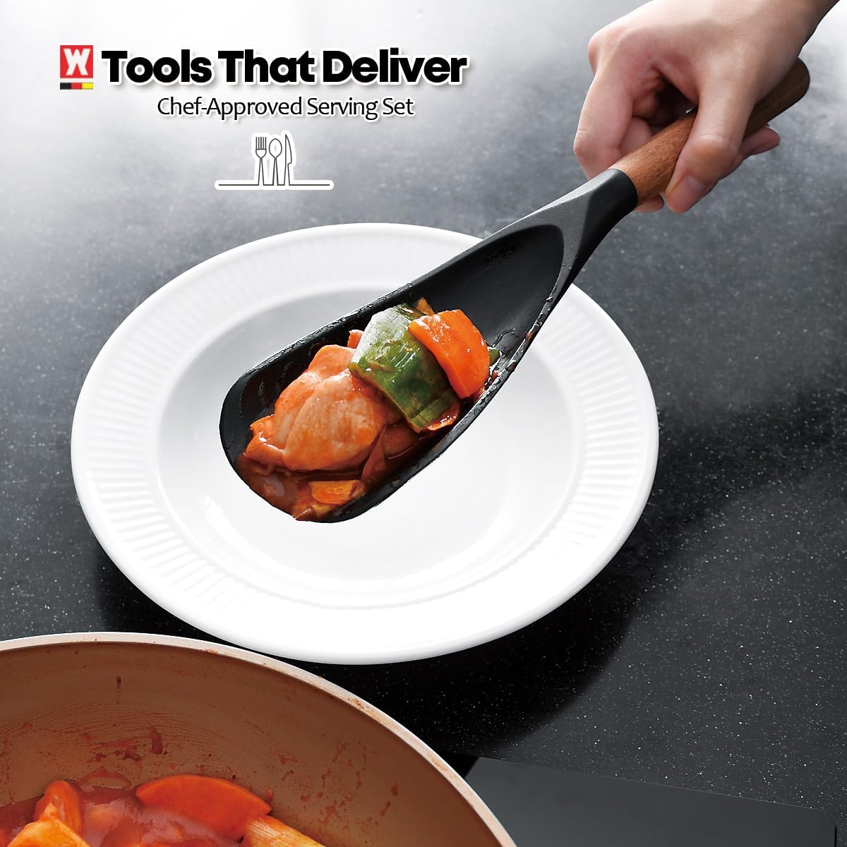 - COMPLETE KITCHEN UTENSIL SET: This set includes the WAGENSTEIGER Long Head Serving Spoon and the WAGENSTEIGER Kitchen Ladle, providing essential tools for various cooking tasks, from stirring and serving soups and stews to mixing and scooping.