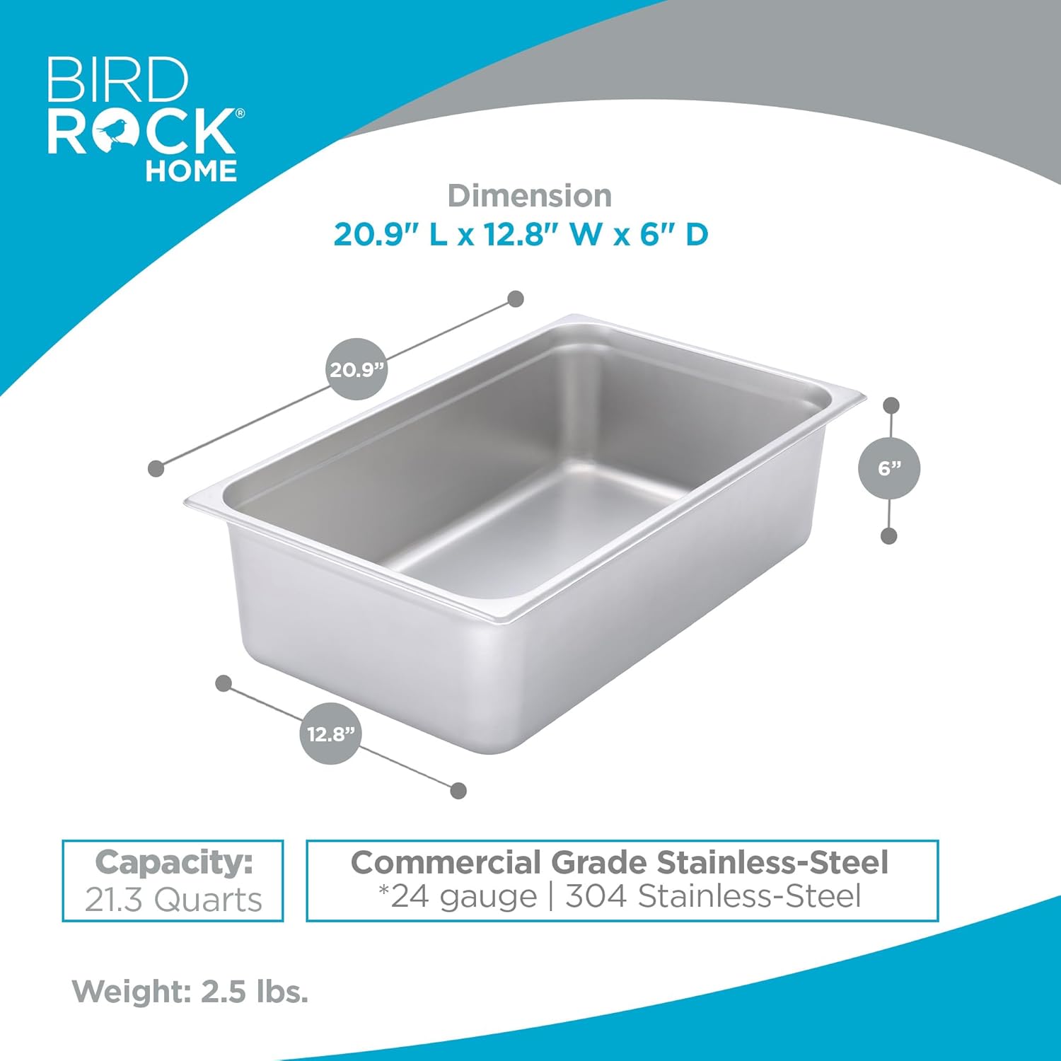 BIRDROCK HOME Stainless Steel Steam Table Pan - Hotel, Restaurant & Catering Supplies - 24 Gauge Steel, 21.3 qt Capacity - Meal Prep, Cooking, & Food Storage Container - 6" Depth, Full-Size (6 Pack)