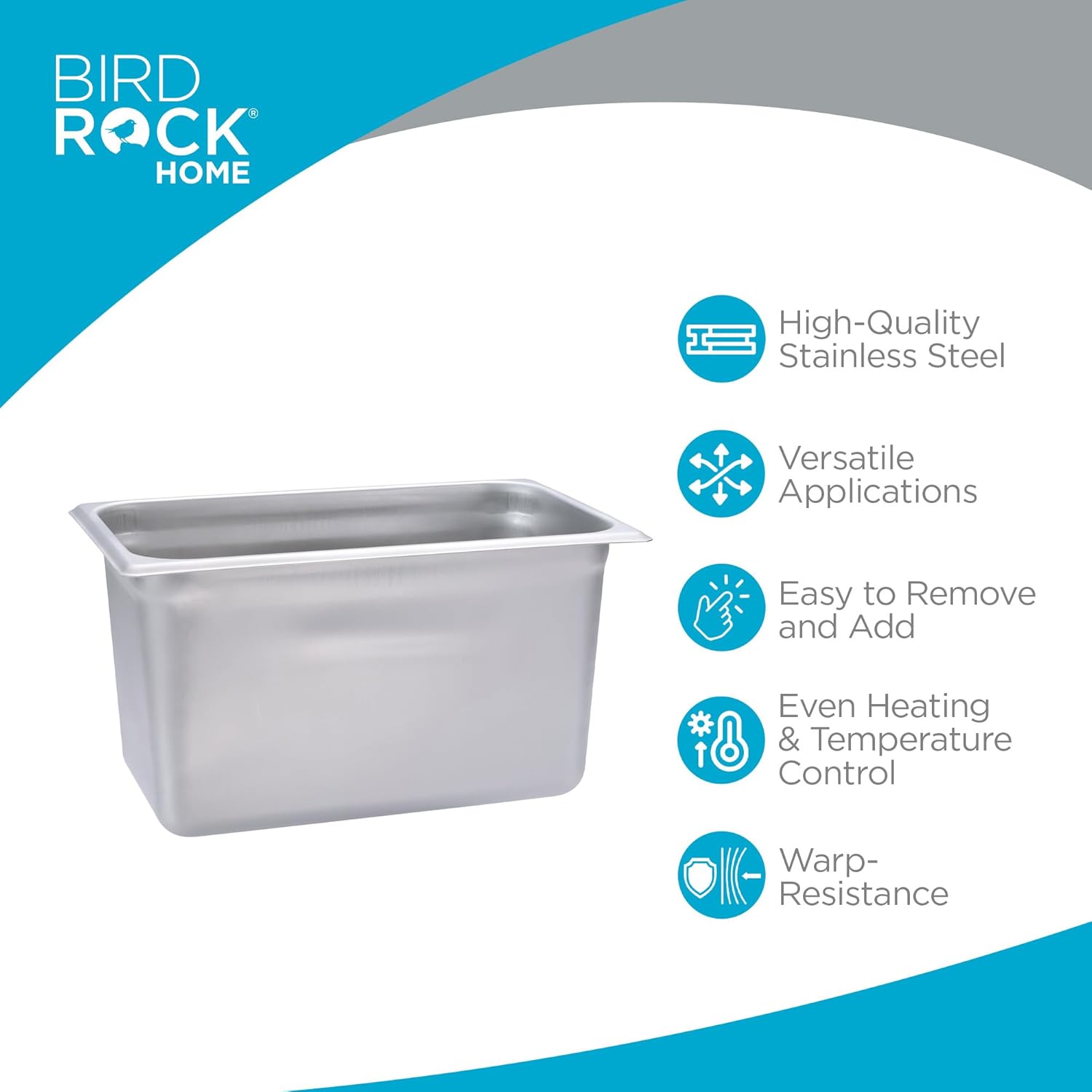 - STAINLESS STEEL CONSTRUCTION: BIRDROCK HOME Steam Table Pans are designed for restaurant and catering needs. Made from 24-gauge, 304 stainless steel, these pans are suitable for meal prep, cooking, and food storage, providing a sturdy and warp-resistant structure.