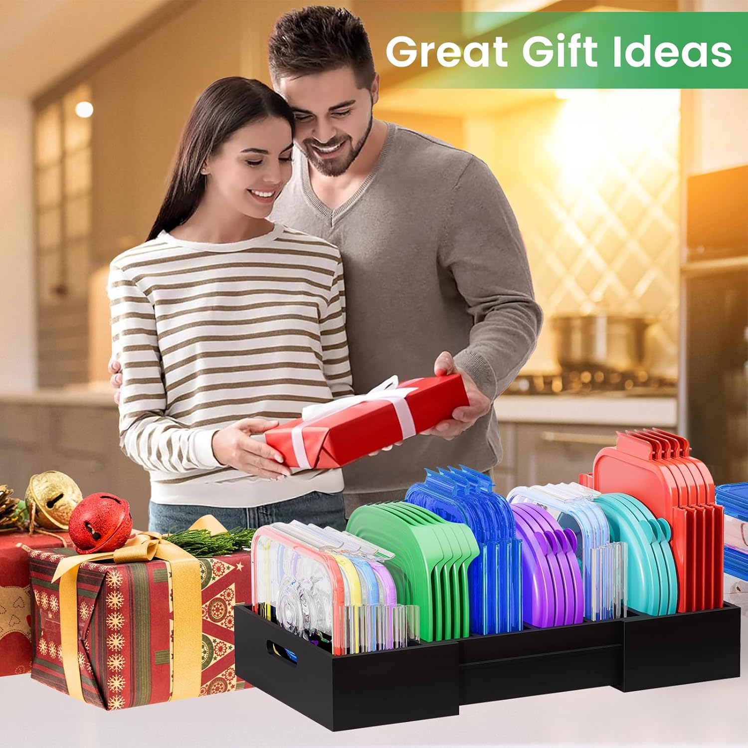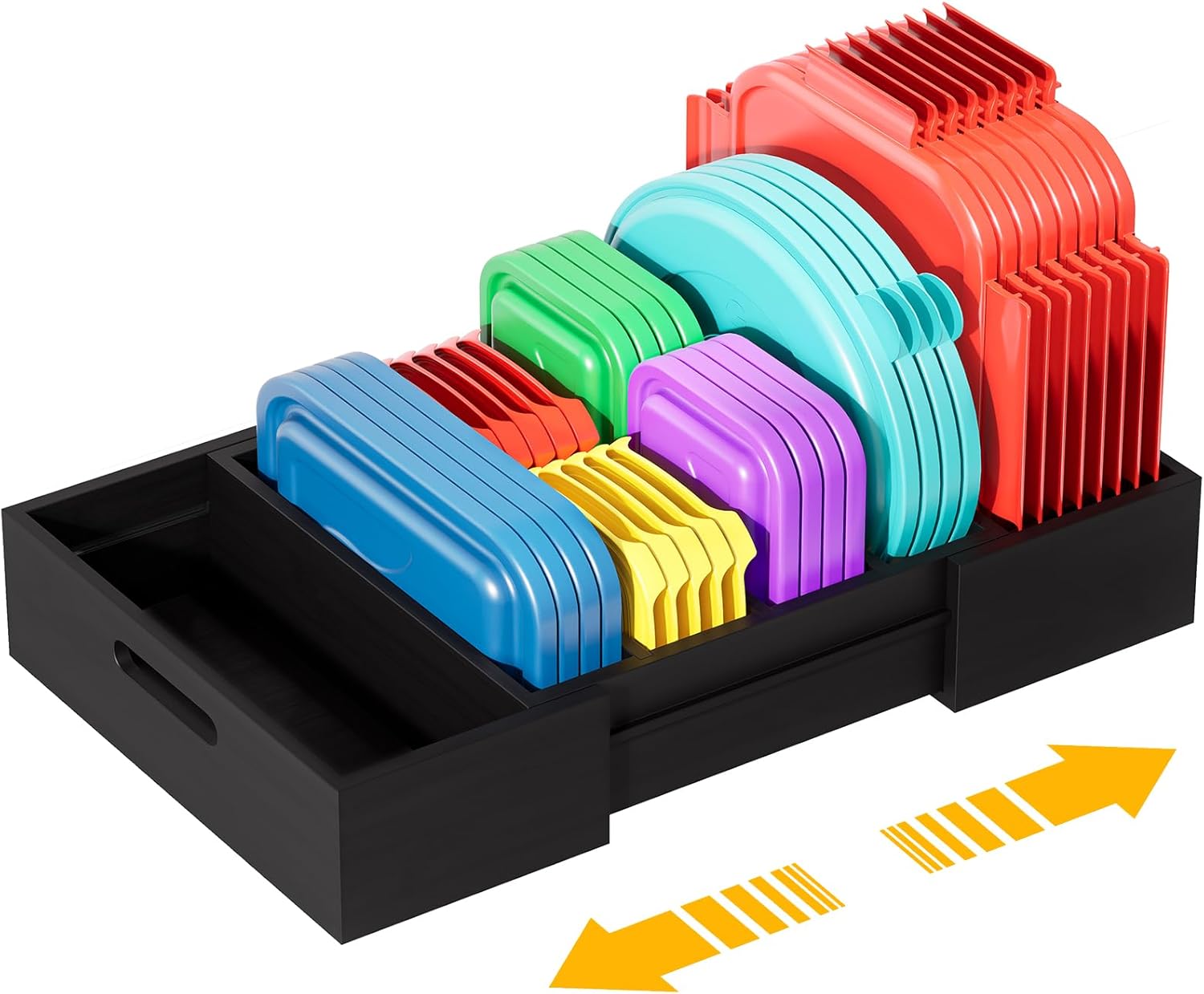 - ๐๐ฑ๐ฉ๐๐ง๐๐๐๐ฅ๐ ๐๐จ๐ง๐ญ๐๐ข๐ง๐๐ซ ๐๐ข๐ ๐๐ซ๐ ๐๐ง๐ข๐ณ๐๐ซ-This food container organizer comes with three adjustable dividers. Smoothly pull out the dividers to customize the storage space you want. Featuring a unique expandable design, it can be expanded from 11.7 inches to 18.7 inches to free up more storage space.