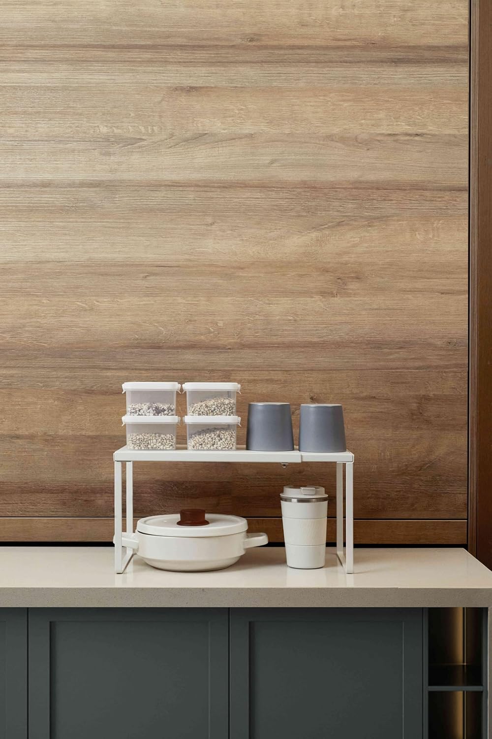 Nxconsu Cabinet Shelf Expandable Organizer Riser Rack for Kitchen Pantry Cupboard Under Sink Countertop Home Organization Extra Storage Space Saver Heavy Duty Metal Edgeless Design White Extra Large