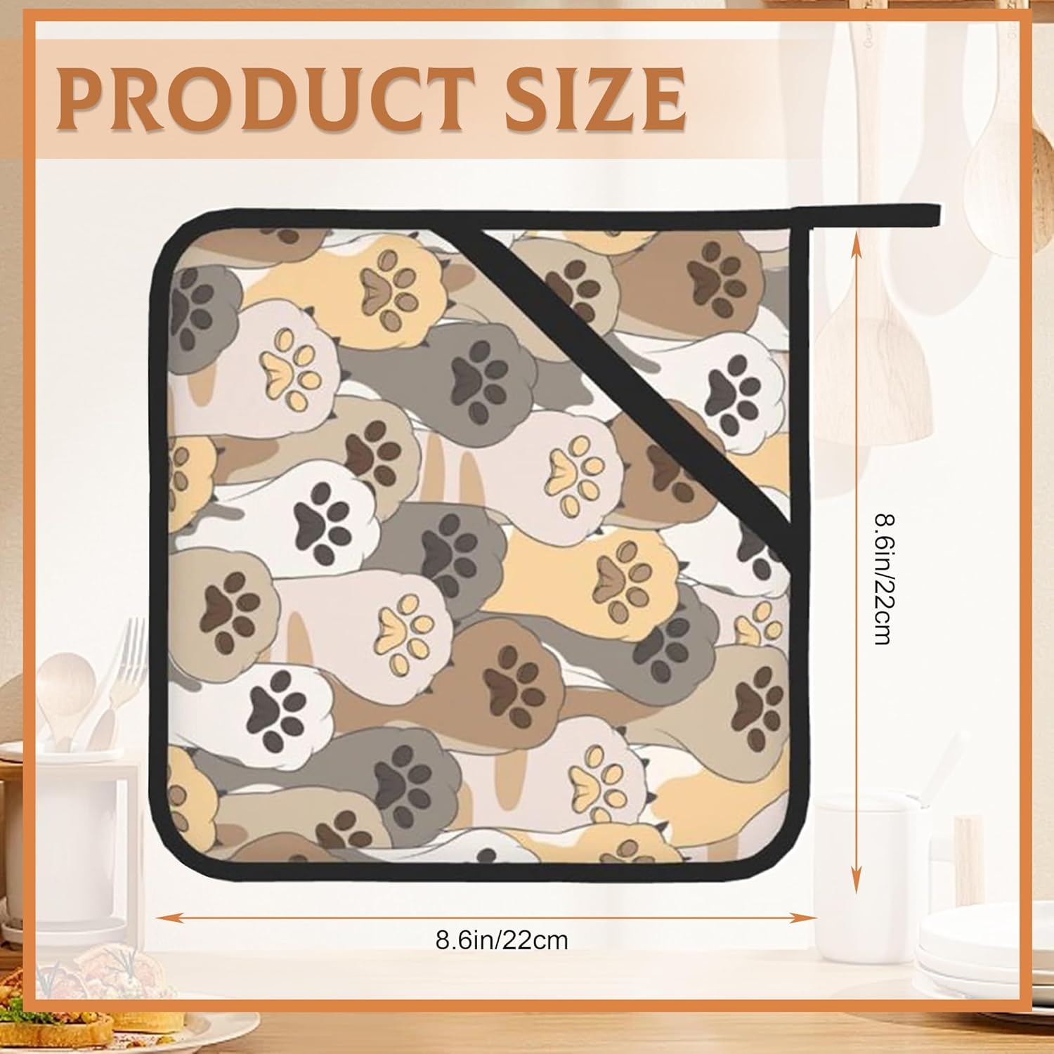 Cat Cute Paw Footprints Pot Holders Set of 2 Heat Resistant Potholders,Fire Oven Hot Pads for Kitchen Cooking Baking Barbecue