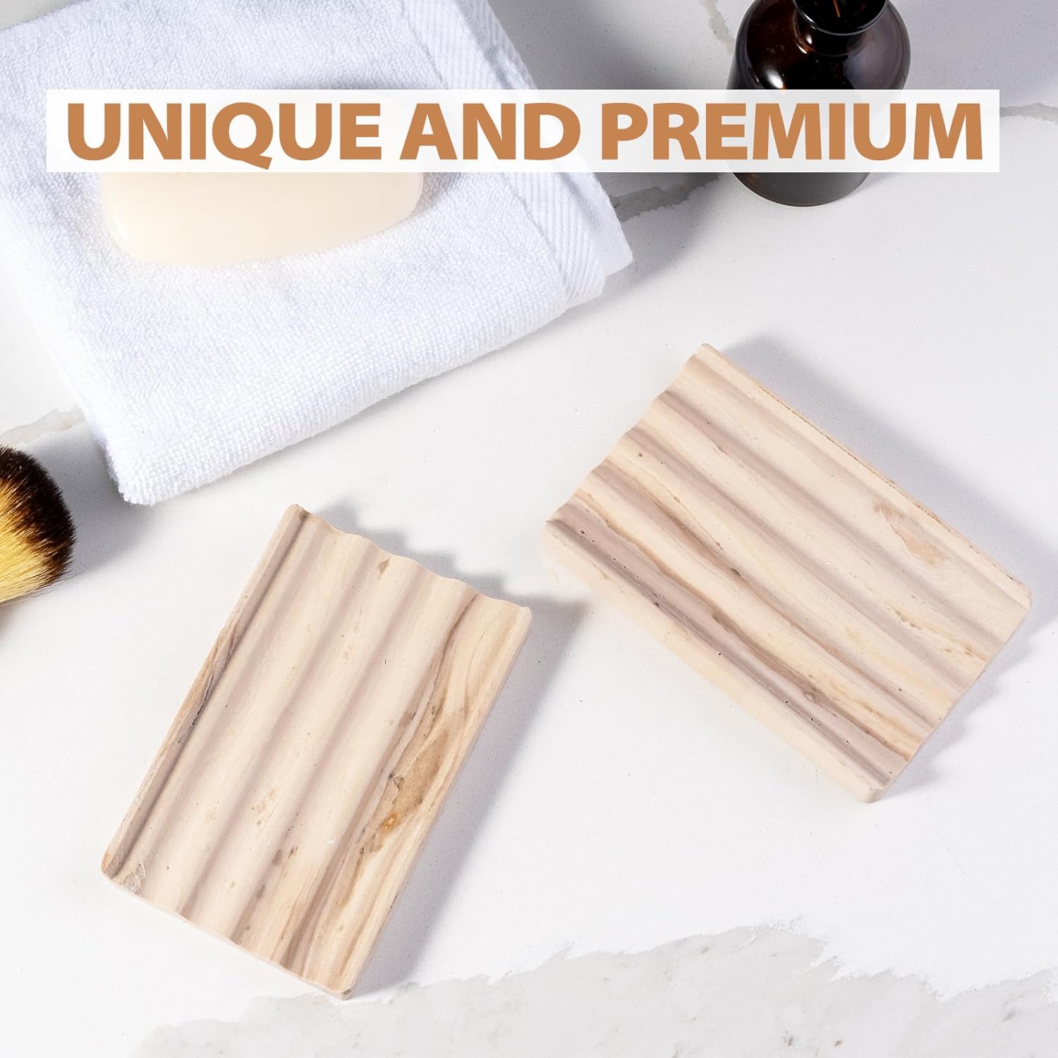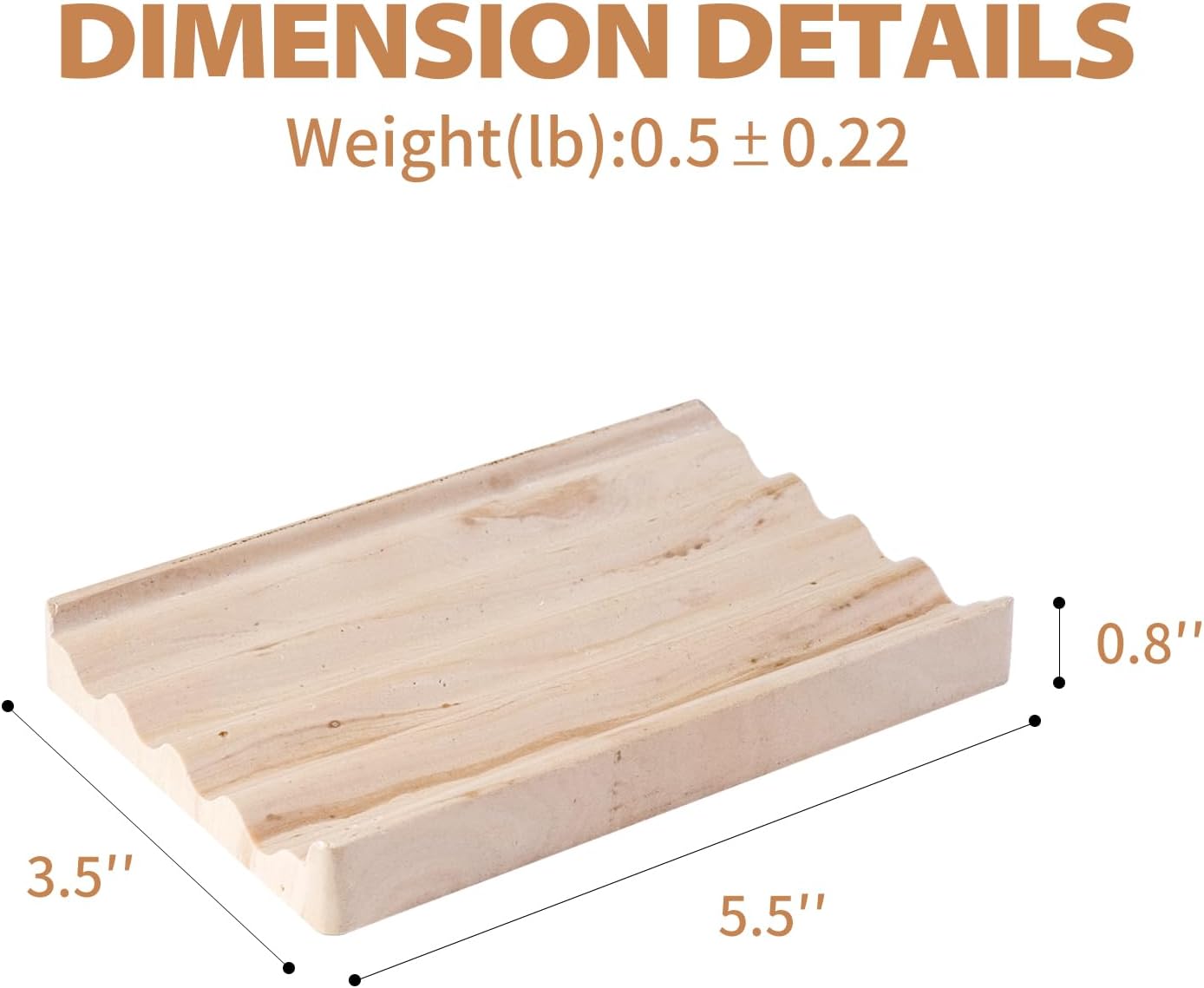 - EXCELLENT DESIGN: Square bar soap dish for holding soap, designed in a wave shape with raised edges. This soap dish drains the soap effectively, preventing it from slipping out and keeps soap clean and dry. The heavy marble soap holder comes with 4 non-slip pads, the pads are under the box for better water leakage.