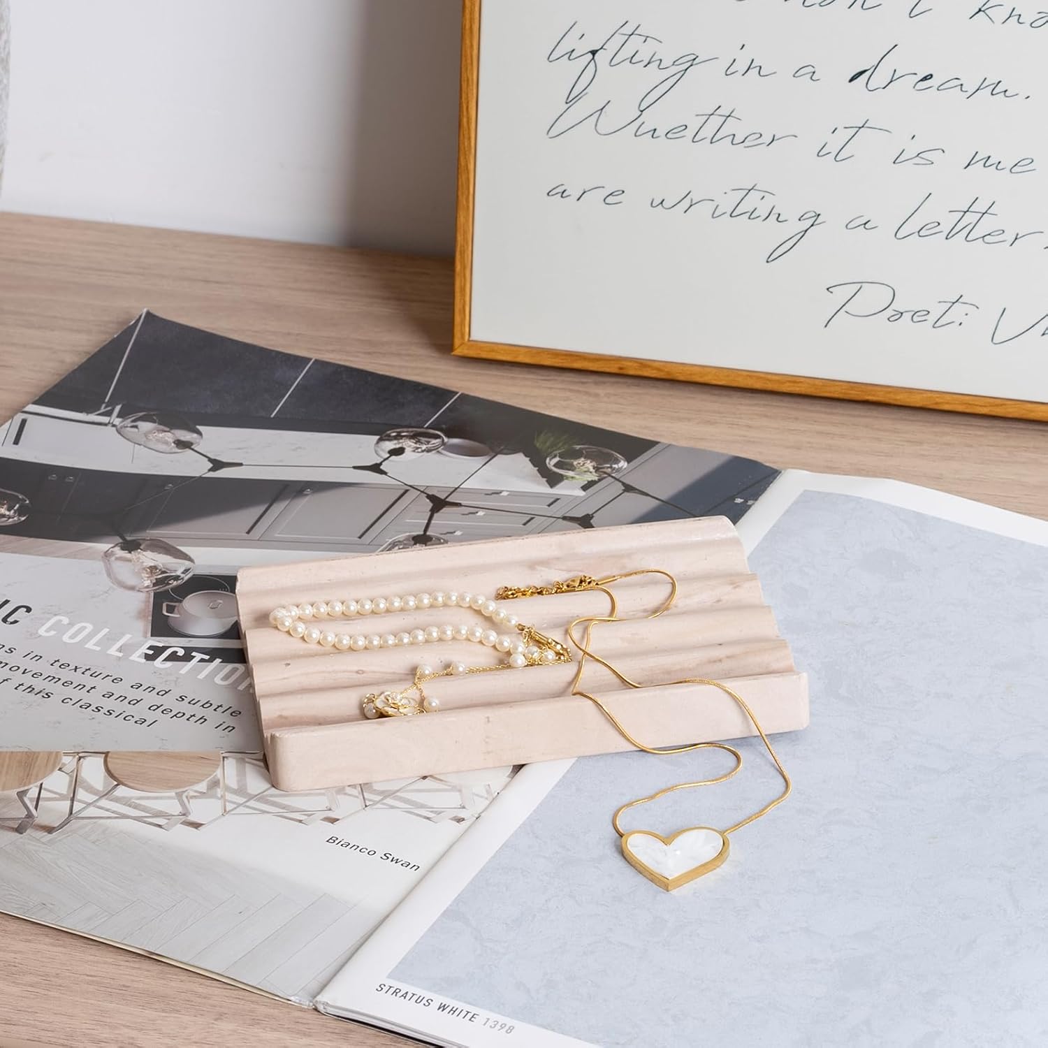 Soap Holder, Marble Soap Dish for Shower, Bar Soaps Holder with Water Ripple Design, Easy Cleaning Soaps Saver for Kitchen Sink,Bathroom, Executive Indian Natural Stone Soap Tray(Phalodi)