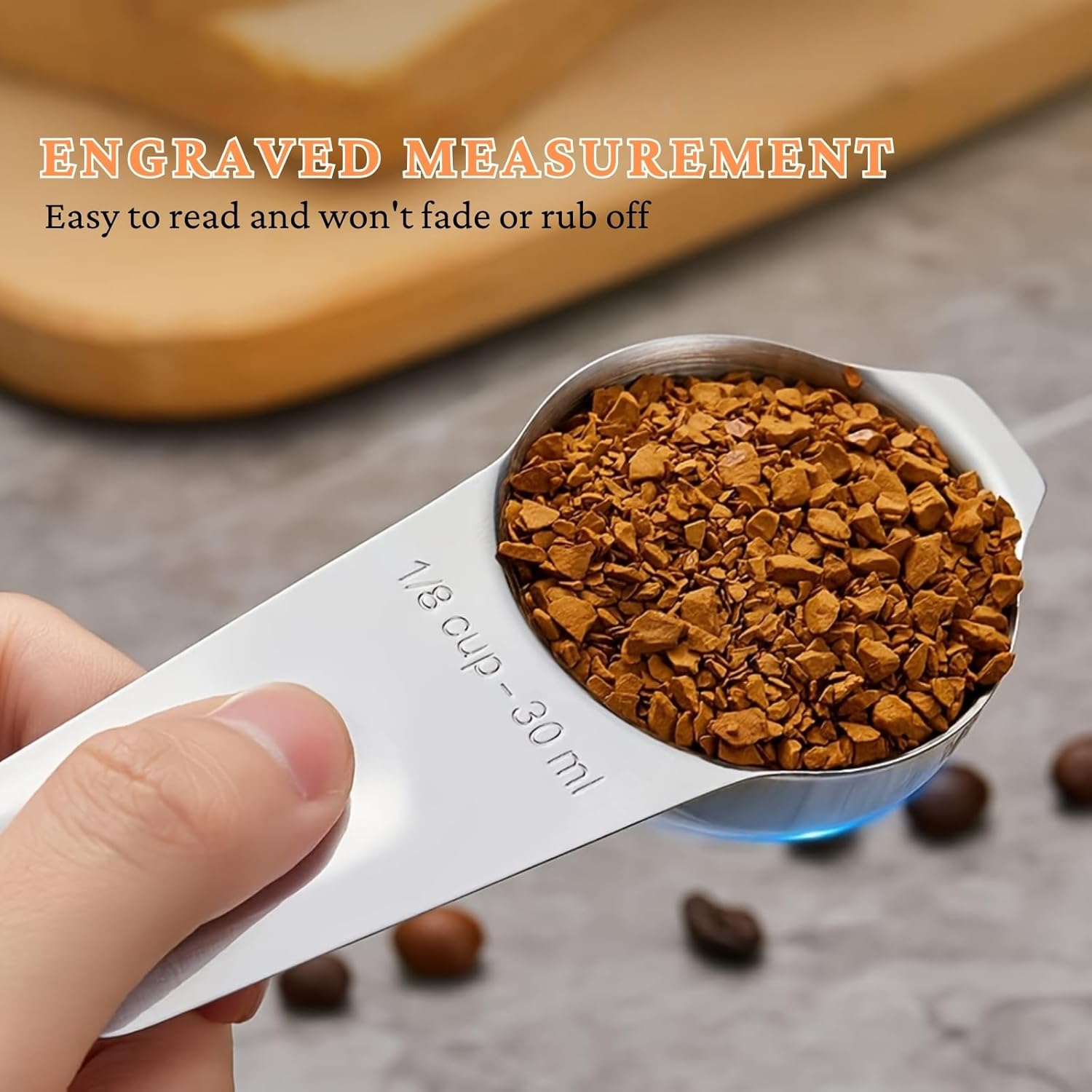 - STURDY & COMFORTABLE DESIGN: Engineered with a mirror-polished finish and smooth, rounded edges, our measuring cups and spoons are safe to use and feel comfortable in hand. The thickened design adds extra sturdiness, preventing any bending or breaking under pressure.