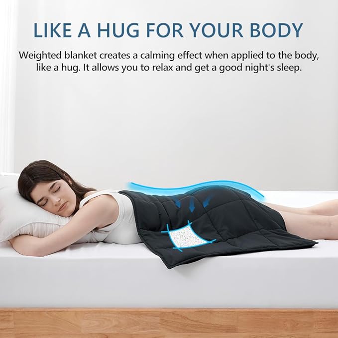 • Meet Your Various Needs: Our weighted blanket is perfect for adults, seniors, and pets. It can be used as a knee blanket for people with leg discomfort. When you are easily distracted at work, you can put heavy blanket over your shoulders, it can help you improve concentration. Body weighted blanket 5 lbs is perfect for people with "sensory needs" or "first-time users". Our weighted blanket is also a good choice if your pets are afraid of "rainy days"