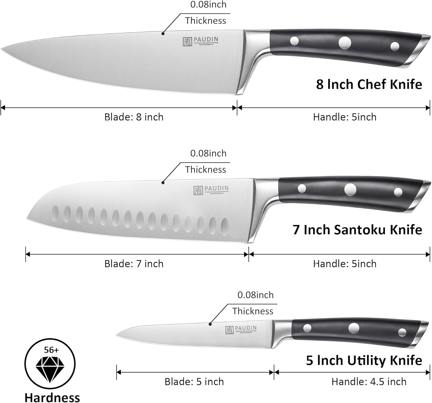 PAUDIN Kitchen Knives Set, Switzer 3-Piece Chefs Knife Set High Carbon Stainless Steel with Ultra Sharp Blade & Plastic Handle Professional Chef Knives