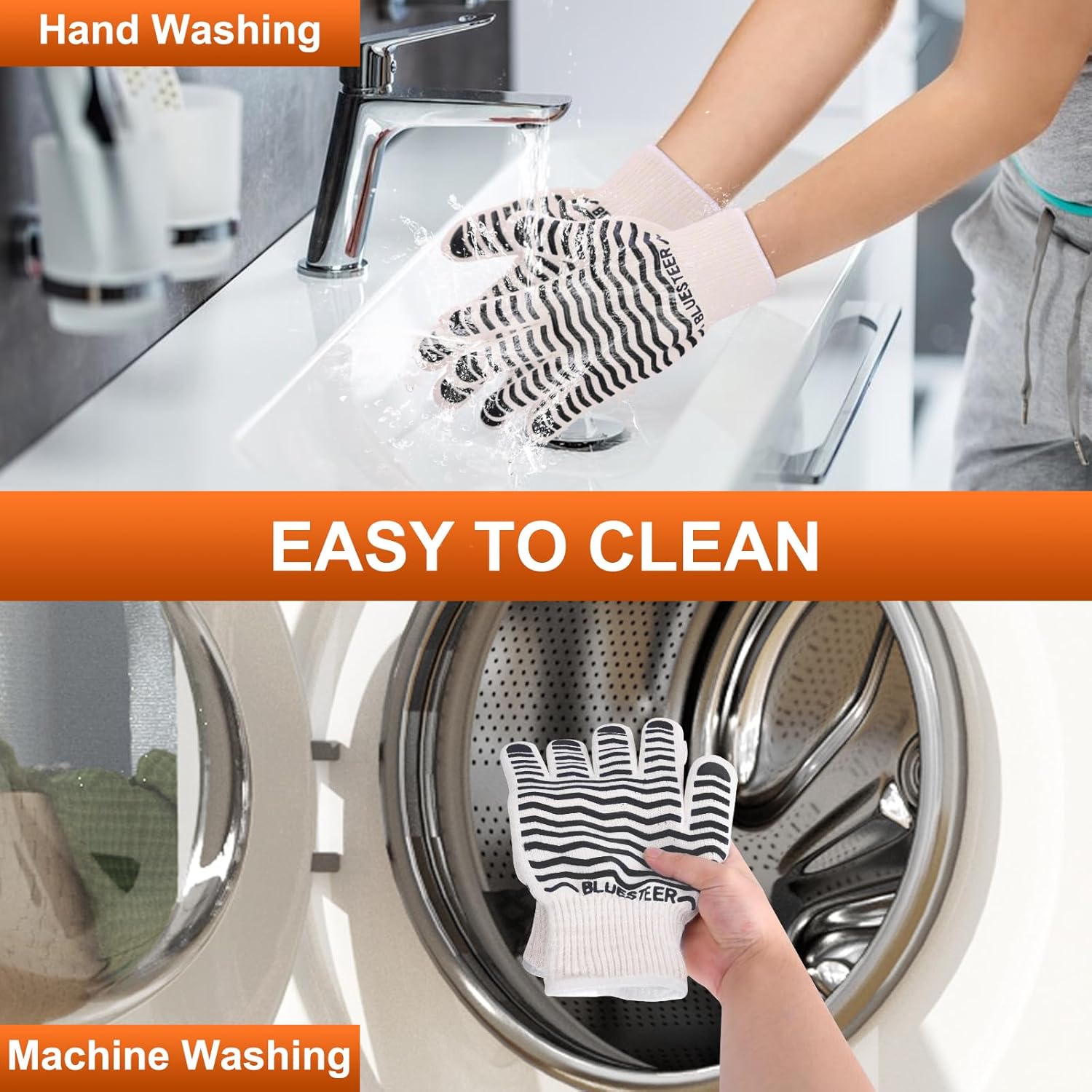 Oven Gloves 932°F Heat Resistant Oven Mitts with Fingers, Heat Proof BBQ Grill Gloves Silicone Grip Fireproof Gloves for Kitchen Cooking Grilling Baking