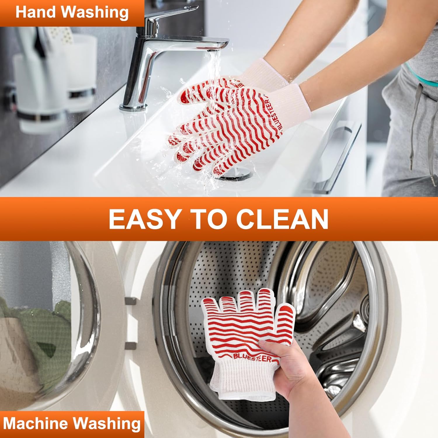 - EASY TO CLEANING AND STORAGE: The kitchen cooking gloves can be hand or machine washed. The strip design allows you to easily hang them on the hooks, which are easy to dry and help you store them. Whether you use it indoors or outdoors, it is the perfect helper to make cooking easier