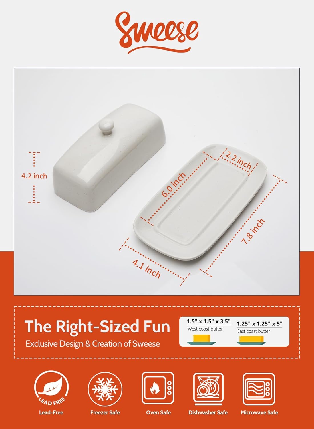 - Elegant & Minimalist Style - The Sweese butter dish is clean, pure, and has a smooth and shiny appearance, which complements the kitchen. The elegant and simple curved design makes the butter keeper look very high-end and fits perfectly with any decoration style. Butter dishes are available in various colors and can be easily combined with other cookware to create a rich and harmonious color ambiance.