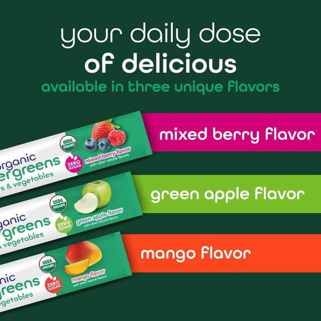 • Green Goodness On the Go: Our organic super green supplement comes in easy-to-tear stick packs so you can enjoy your daily greens supplement wherever you go. Bring the packs in your backpack, gym bag, purse, or even in a pocket