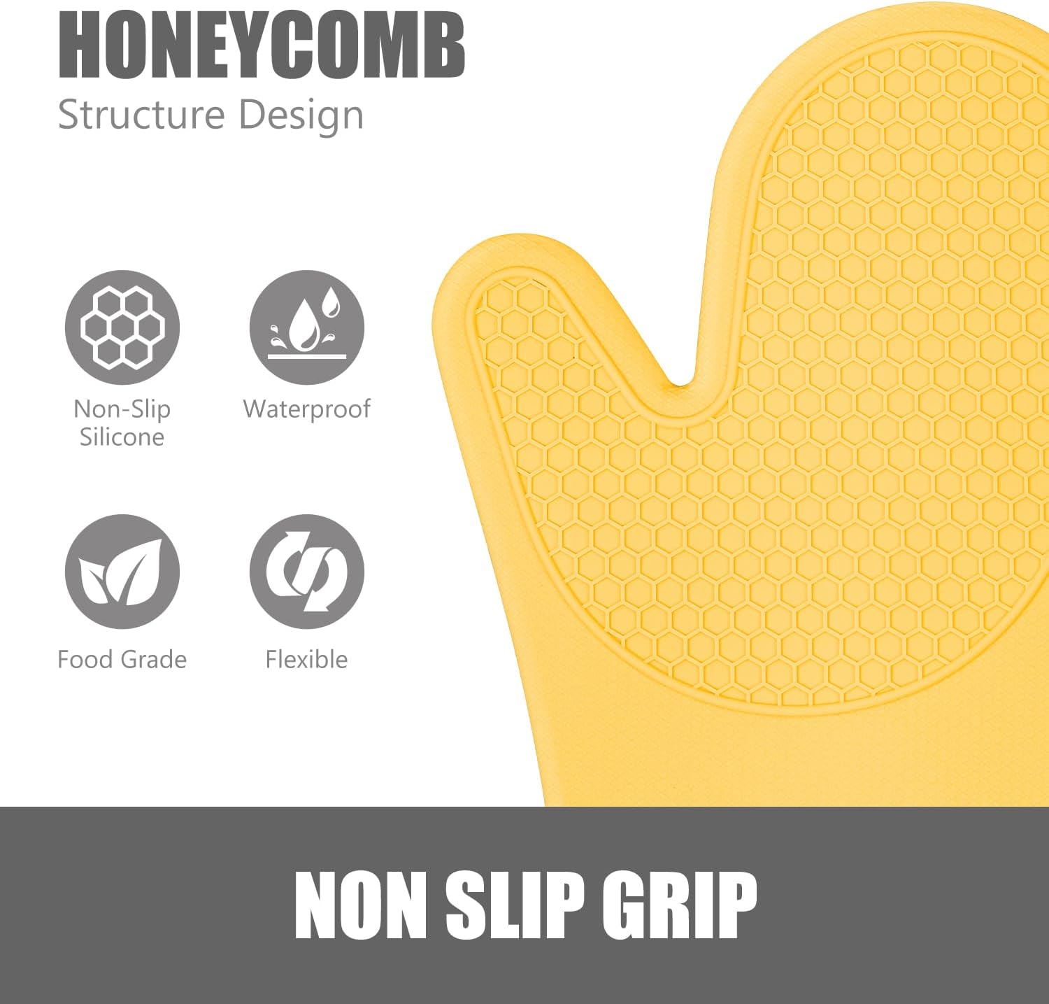 - Sturdy, flexible high-grade oven mitts, trivets and mini pinch mitts with a honeycomb textured surface for a strong grip. Heat-safe up to 500 degrees F. The 12.7 inch extra long oven mitts safeguard hands and forearms from hot cookware and boiling water, use the trivets to protect kitchen counters or as a potholder and use the mini pinch mitts for instant gripping.