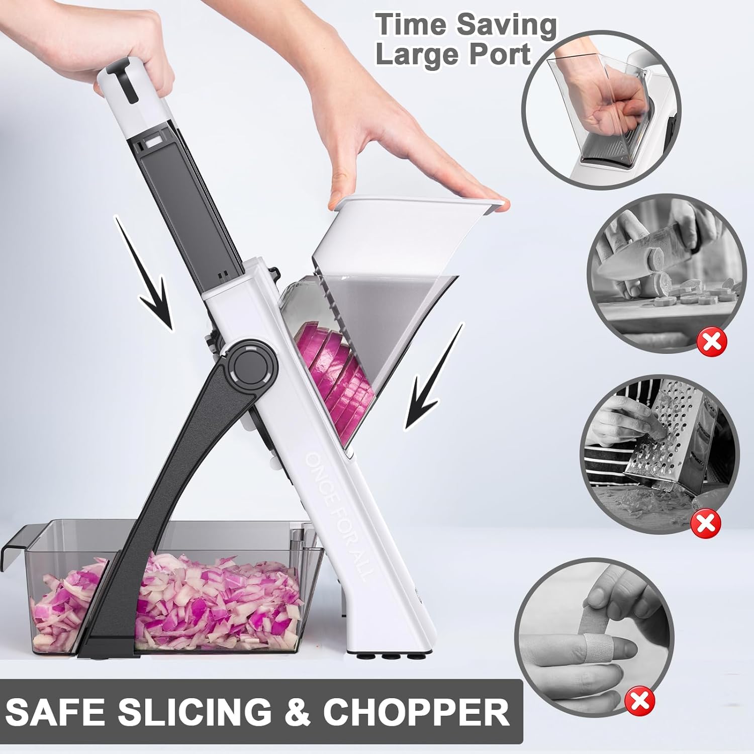 - ✅AFTER-SALE WARRANTY: We want to make your life easier, better, and more enjoyable. If you're not happy with your vegetable chopper and slicer, we'll be happy to replace it. Please read the instruction manual carefully before using the QYKIC food slicer and chopper. If you have any questions or problems, please message the seller through Amazon and we'll reply within 24 hours.