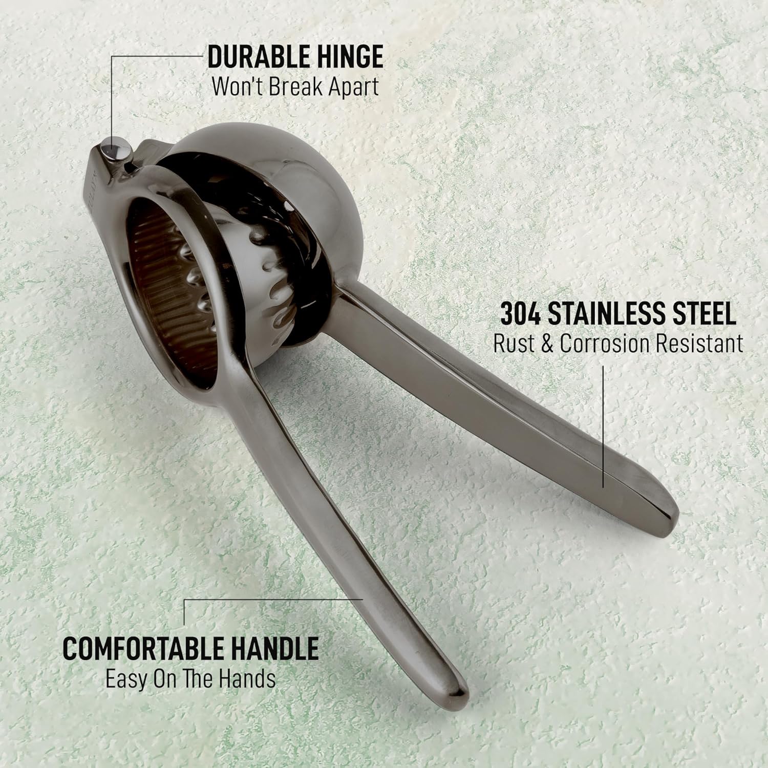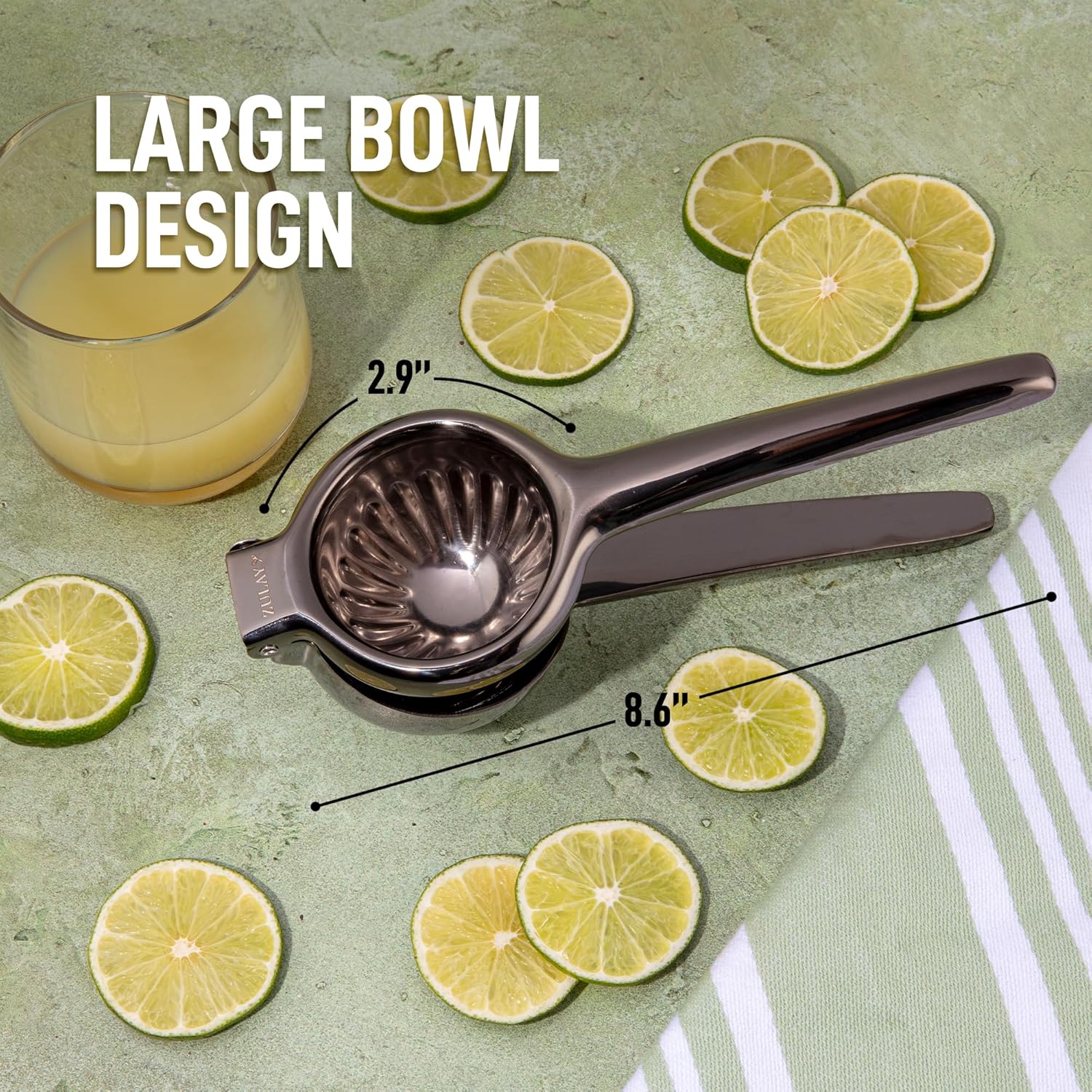 Zulay Kitchen Lemon Squeezer Stainless Steel - Premium Quality, Heavy Duty Solid Metal Squeezer Bowl - Large Manual Citrus Press Juicer and Lime Squeezer Stainless Steel - Black