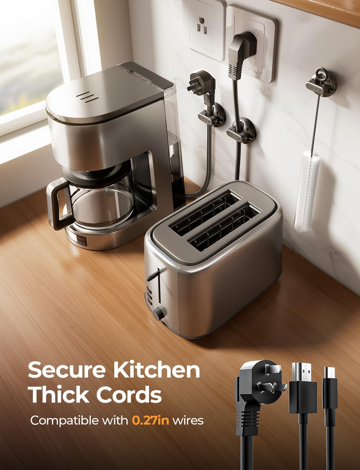 - Strong Adhesive Cord Holder – Equipped with high-strength no-residue adhesive, this cable holder sticks firmly to wood, glass, and metal, ensuring durable cable management without damaging furniture.