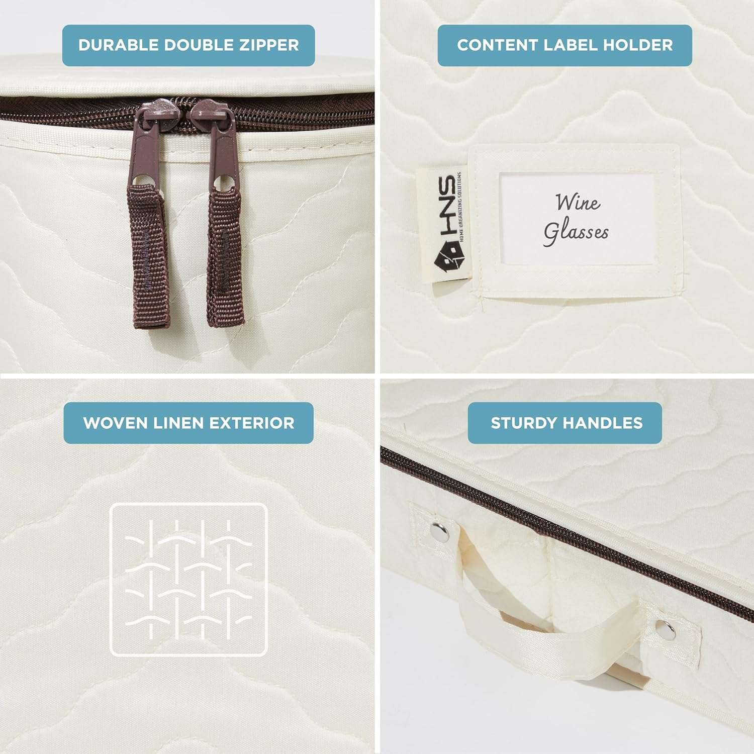 Hard Shell China Storage Containers 8-Piece Set Moving Boxes for Dinnerware, Glasses, Plates, Mugs and Saucers Sturdy Dish Organizer with Dividers for Seasonal Storage - Service for 12 - Beige Quilted