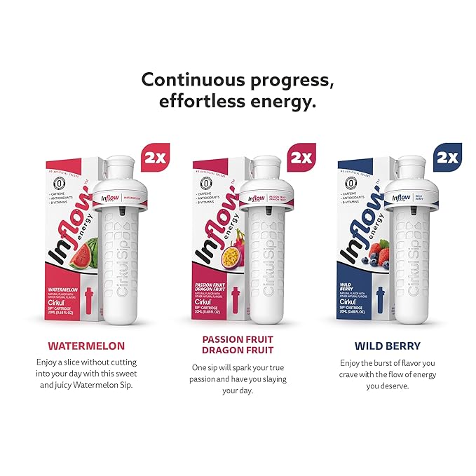 Cirkul Inflow Energy Flavor Cartridge Variety Pack with Caffeine, 6-Pack (2 Passion Fruit Dragon Fruit, 2 Wild Berry, 2 Watermelon), No Sugar, Zero Calorie Drink Mix