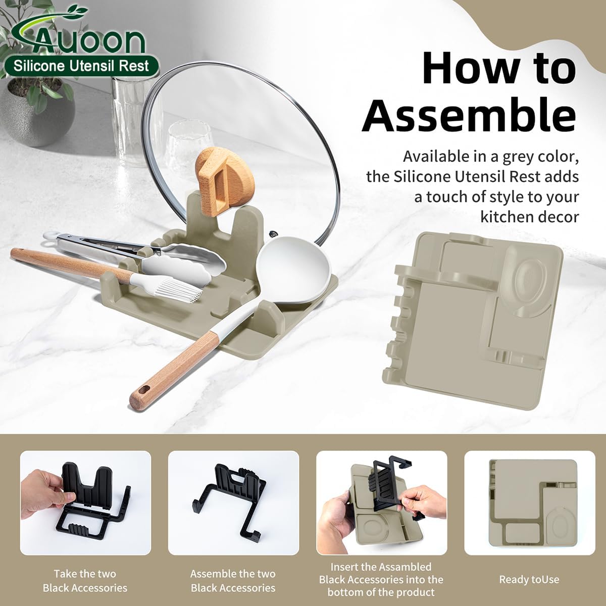 - 【Keep Your Countertop Clean】AUOON spoon and lid rest is a must-have for a tidy kitchen. It neatly holds your utensils and pot lid, preventing oil and water from splattering everywhere. Enjoy a clean and organized cooking space