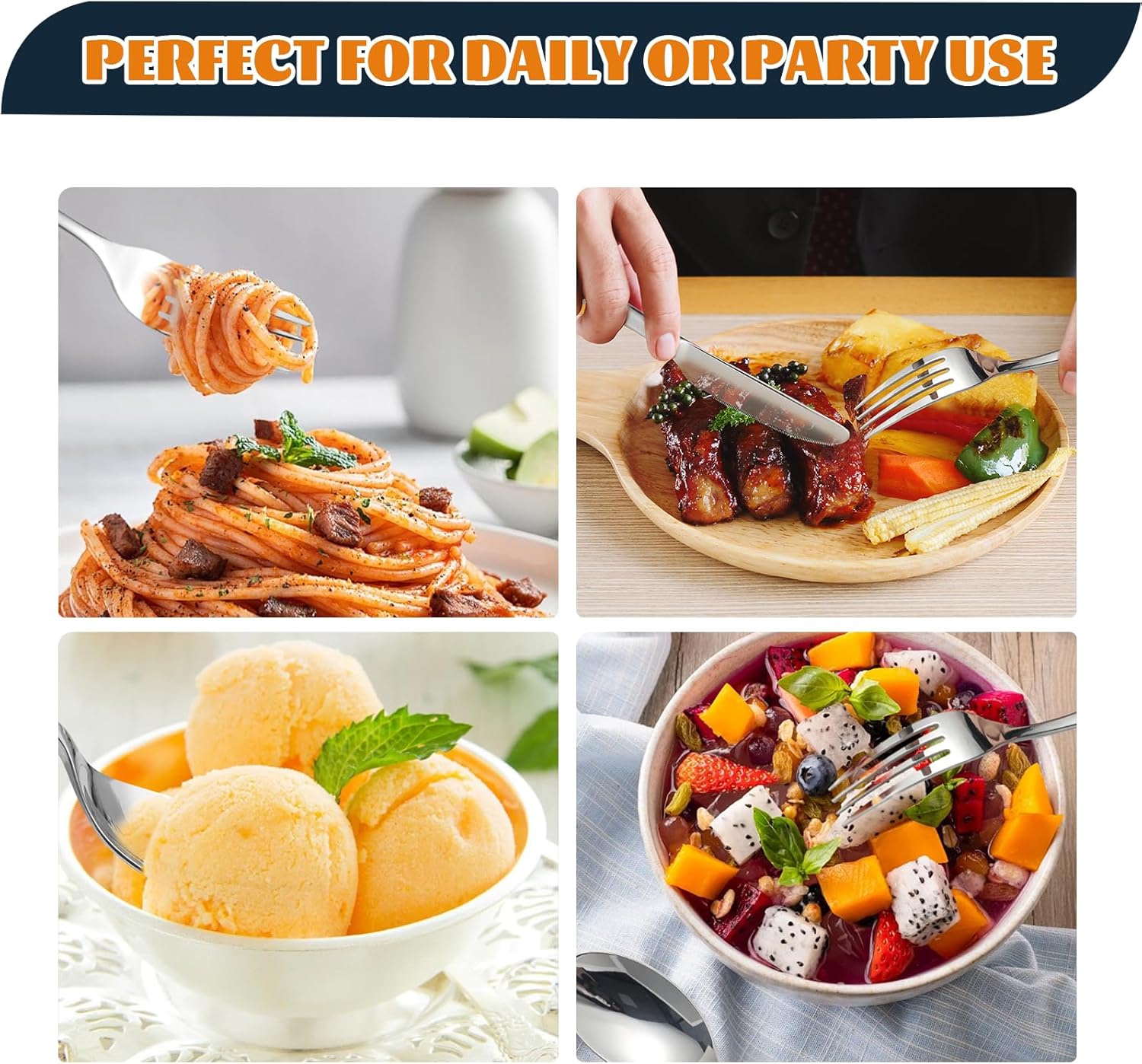 - MULTI-SCENARIO APPLICATION: The knife, fork and spoon set is not only suitable for daily family dining use, but also perfect for party gatherings and other occasions. Its modern and minimalist style can be easily integrated into various table settings. Exquisite packaging and superior quality make the flatware sets an excellent choice for gift-giving. Whether you give the utensils set to your friends and family or business partners, it will reflect your intention and taste.