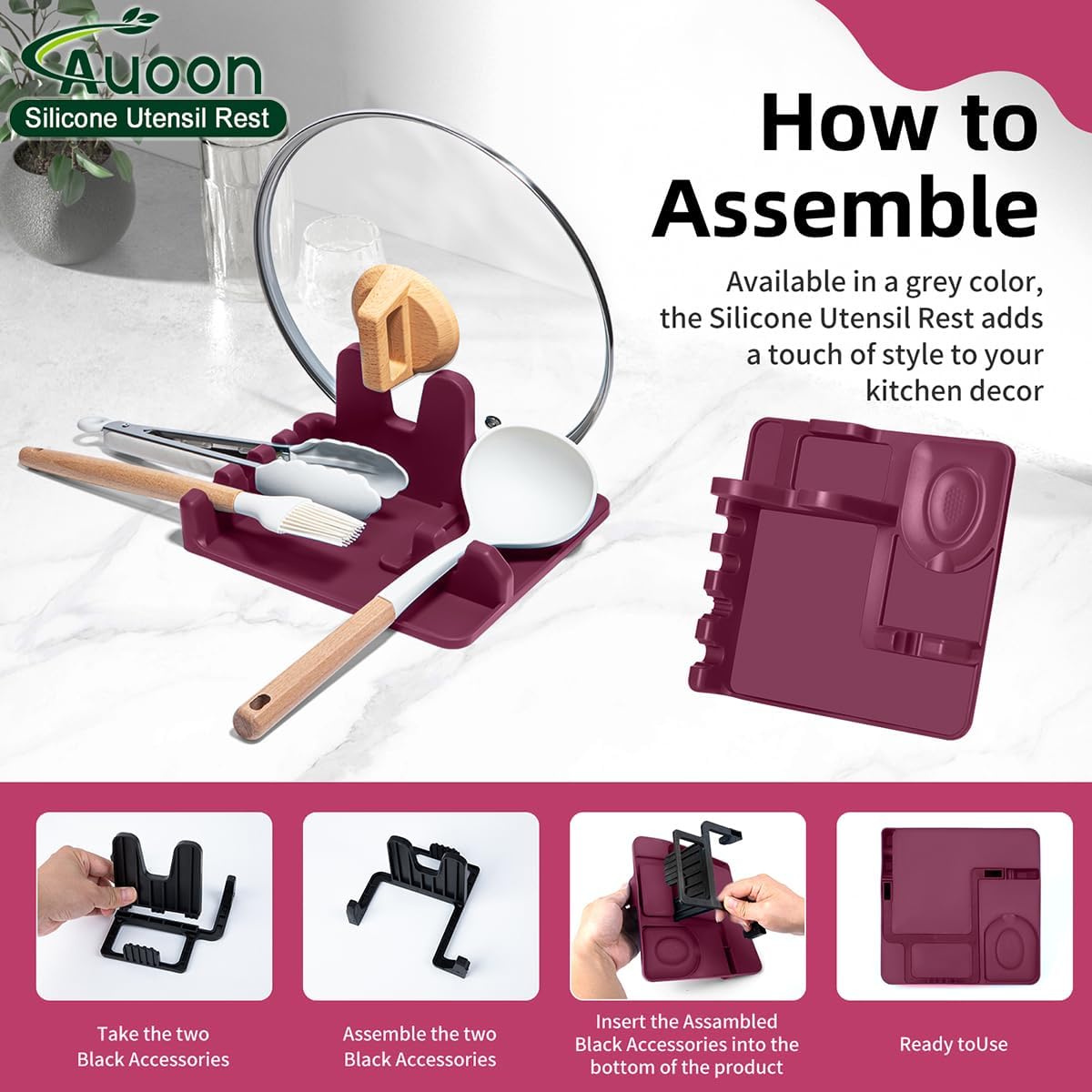 - 【Keep Your Countertop Clean】AUOON spoon and lid rest is a must-have for a tidy kitchen. It neatly holds your utensils and pot lid, preventing oil and water from splattering everywhere. Enjoy a clean and organized cooking space