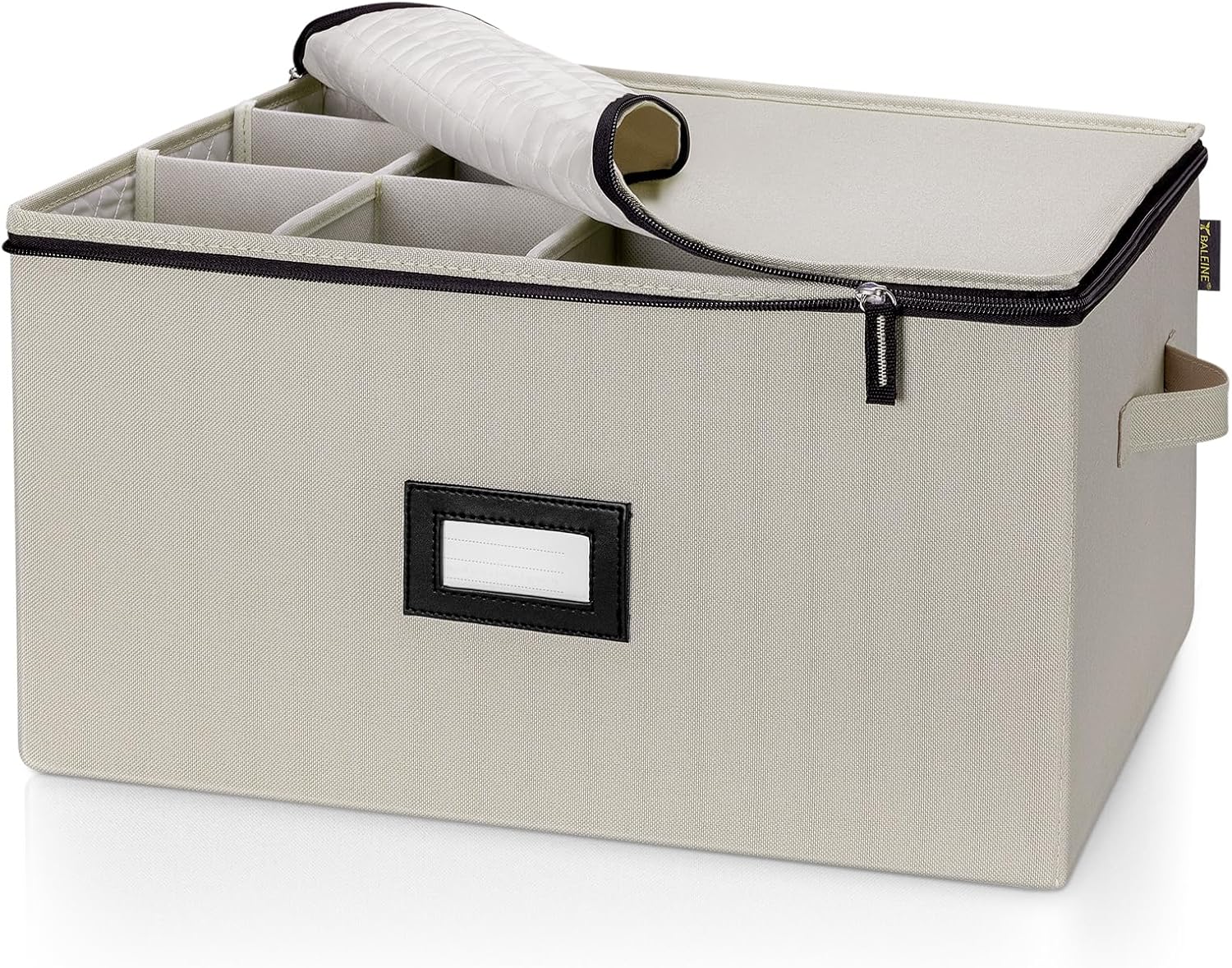 - Sturdy Protection: This china storage container offers excellent protection for your dinnerware, keeping plates, cups, and glassware safe during transport; The soft, padded lining prevents scratches and breakages, providing peace of mind during storage or moving