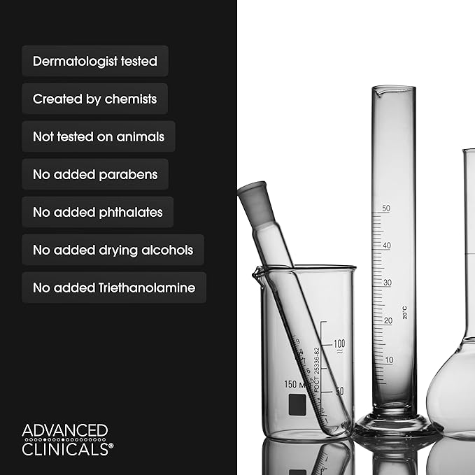 • SCIENCE-BACKED SKINCARE – Advanced Clinicals offers science-driven formulas featuring well known and proven ingredients. Formulated by our in-house R&D team, with over 25 years of skincare expertise, Advanced Clinicals products are dermatologist tested and formulated with your skincare goals in mind. Made in the Midwest with globally sourced materials.