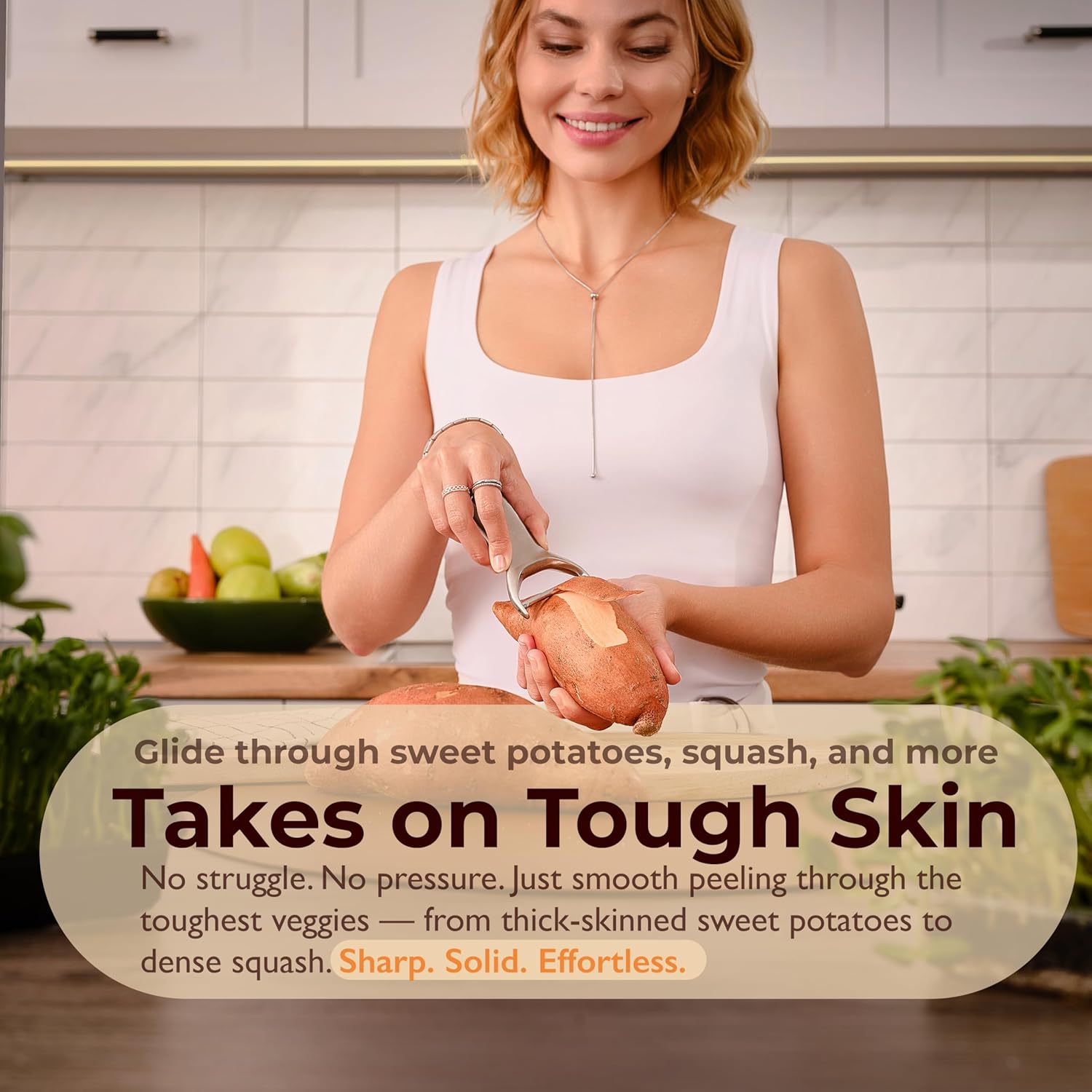 - Razor-Sharp Blade Y peelers for kitchen - Engineered for exceptional sharpness and durability food peeler is perfect as potato peeler hand, mango peeler, lemon peeler, ginger peeler, pela papas