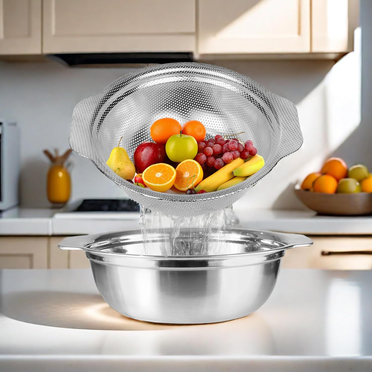 - Stainless Steel Colander: Colander bowl set is made of safe, healthy and durable material, the holes of the strainer are dense and uniform, which can drain quickly. they are an indispensable tool in the kitchen for easy cleaning and food preparation.