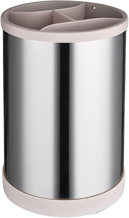Kitchen Utensil Holder for Countertop, 360°Rotating Cooking Utensil Crocks,4 Compartment Stainless Steel Utensil Holder,6.7”Large Utensil Crock Spoon Fork Knife Holder For Kitchen Counter (khaki)