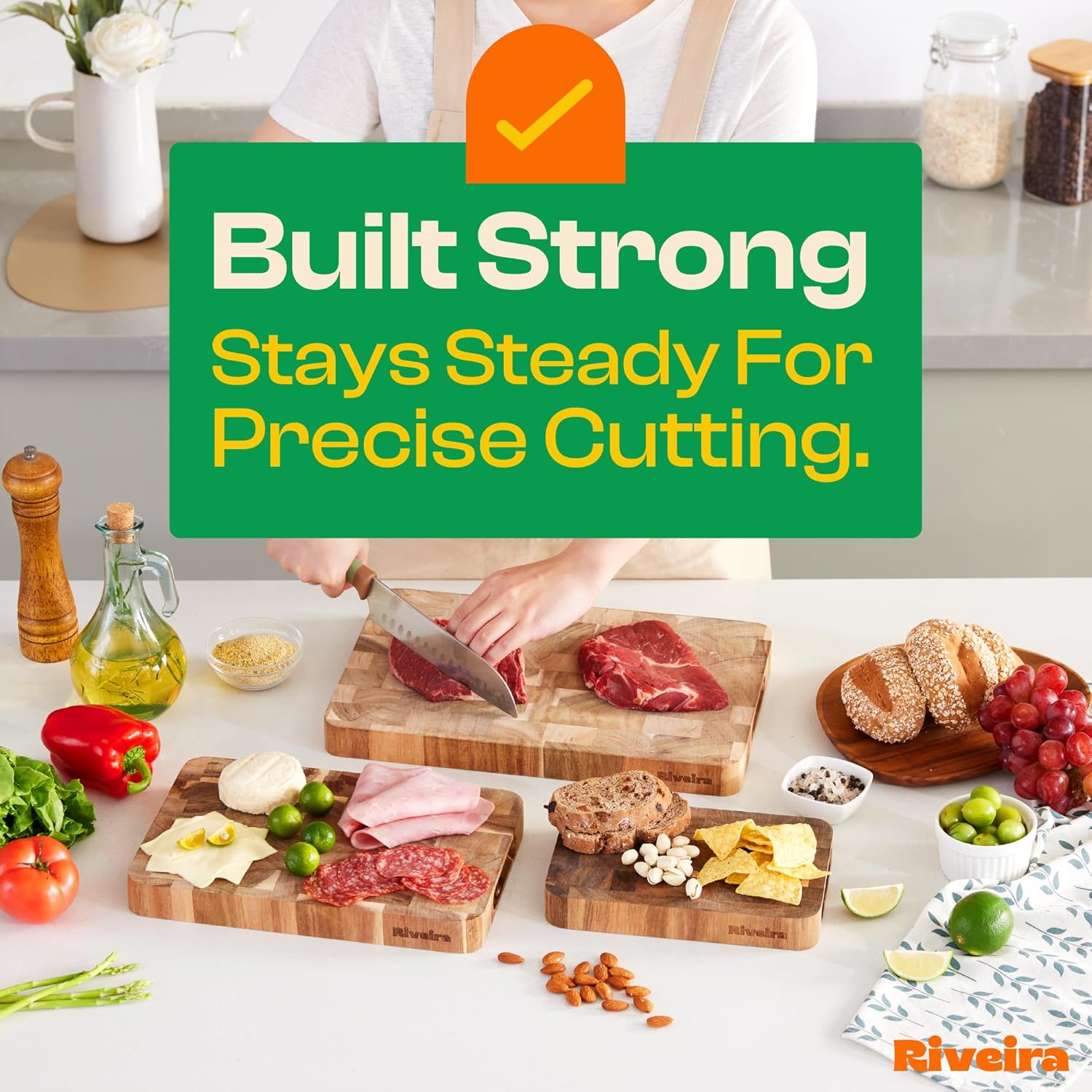 - Handle Everything with Confidence — The built-in handle holds of the acacia wooden cutting boards are designed for handling everything with confidence and easy maneuvering. Pre-oiled and ready for immediate bewilderment, this edge grain cutting board is not just convenient for the kitchen mess but has a unique design to maintain, ensuring a performance that is both comfortable and clean for cutting board wooden. Riviera checkerboard cutting board will be perfect in your kitchen.