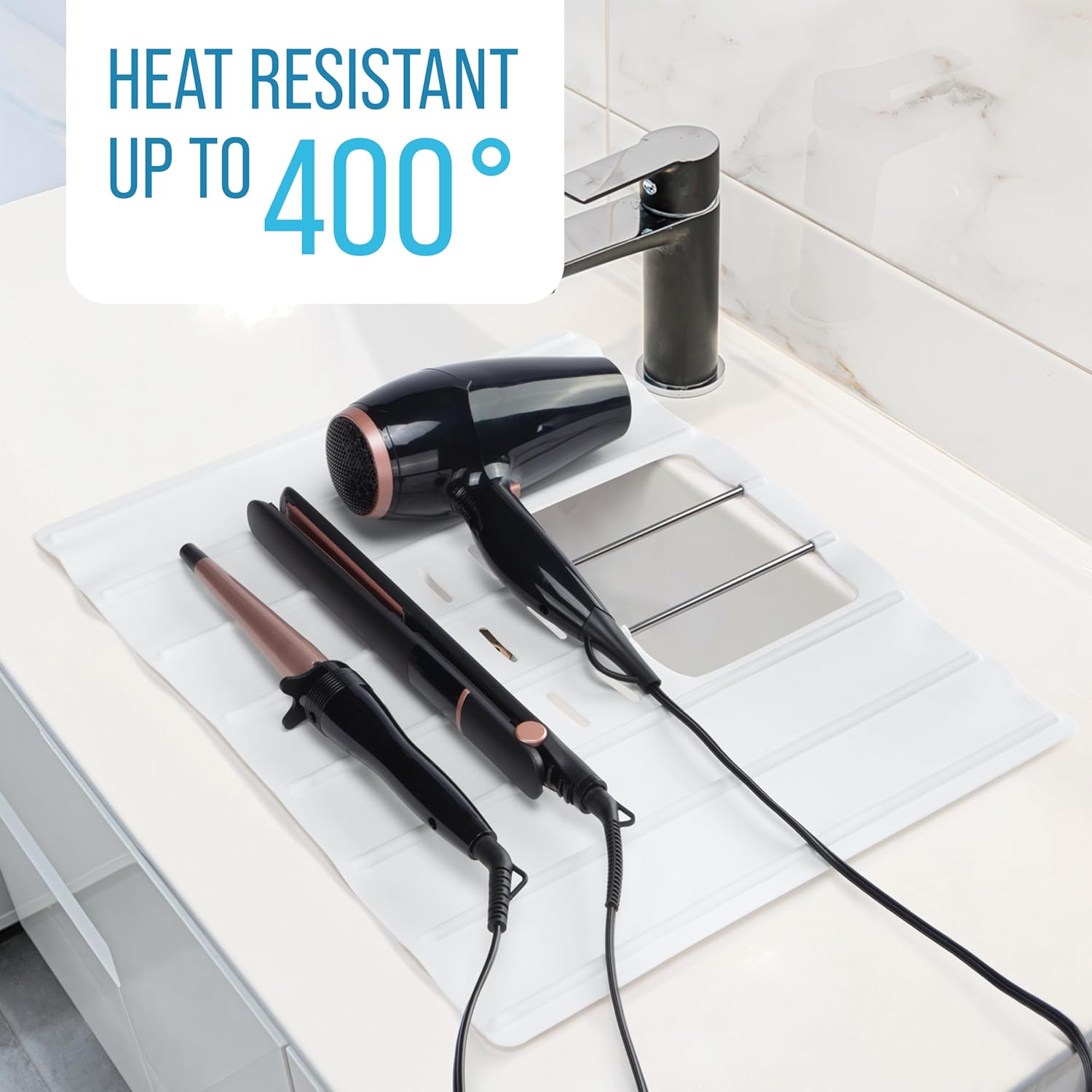 - Made to Simplify Routines: Designed for maximum convenience, this silicone sink topper makeup mat can be used at the same time as using the faucet. Keep your flat iron mat in place while washing your hands or brushing your teeth, and shave precious seconds off your routine