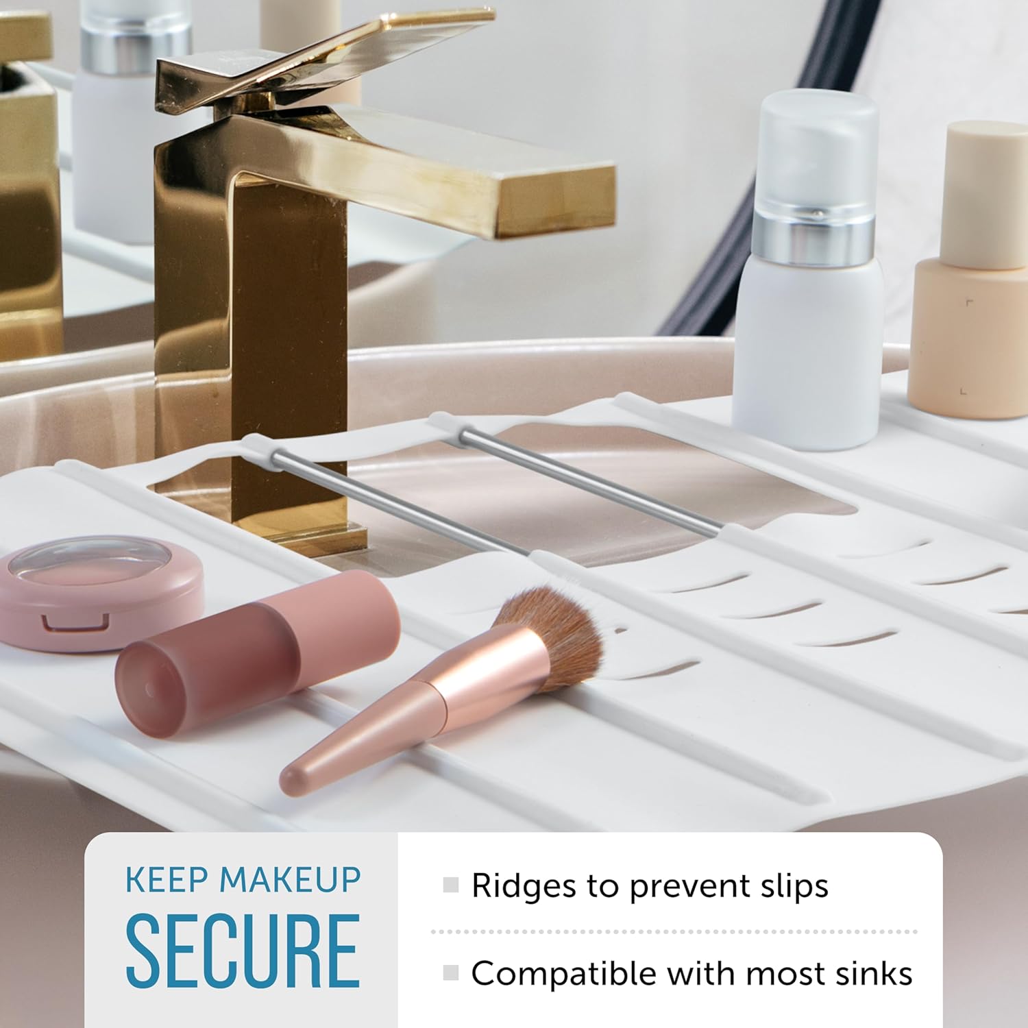 - Extra Counter Space: Tired of putting your makeup in the sink while you get ready? This foldable silicone sink cover creates room to store everything you need. Designed with silicone ridges to keep your mascara and other cosmetics from rolling away