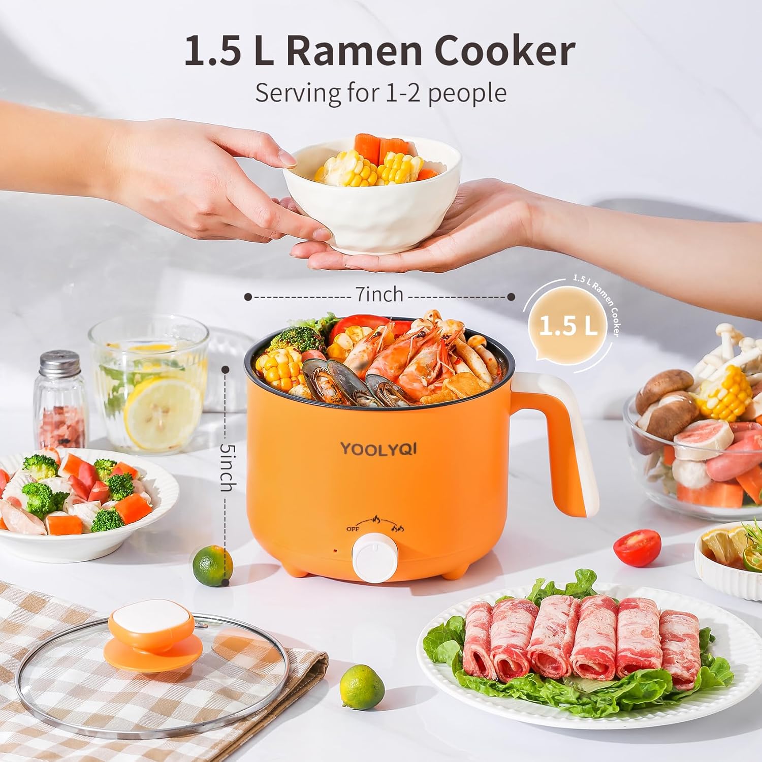 Hot Pot Electric : 1.5L Mini Ramen Cooker with 2 Temp Settings, Portable Lazy Pot Dorm, Office Must Have for Ramen/Noodles/Soup/Oatmeal
