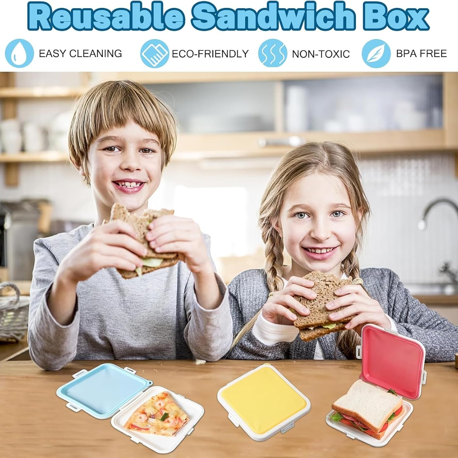 - ππ πππ πππππ πππππππππ - The sandwich container is made of food grade plastic and made of silicone material which is safe, odorless, BPA free and reusable. The sandwich box containers has three snap-on lids for a tight seal and longer freshness.