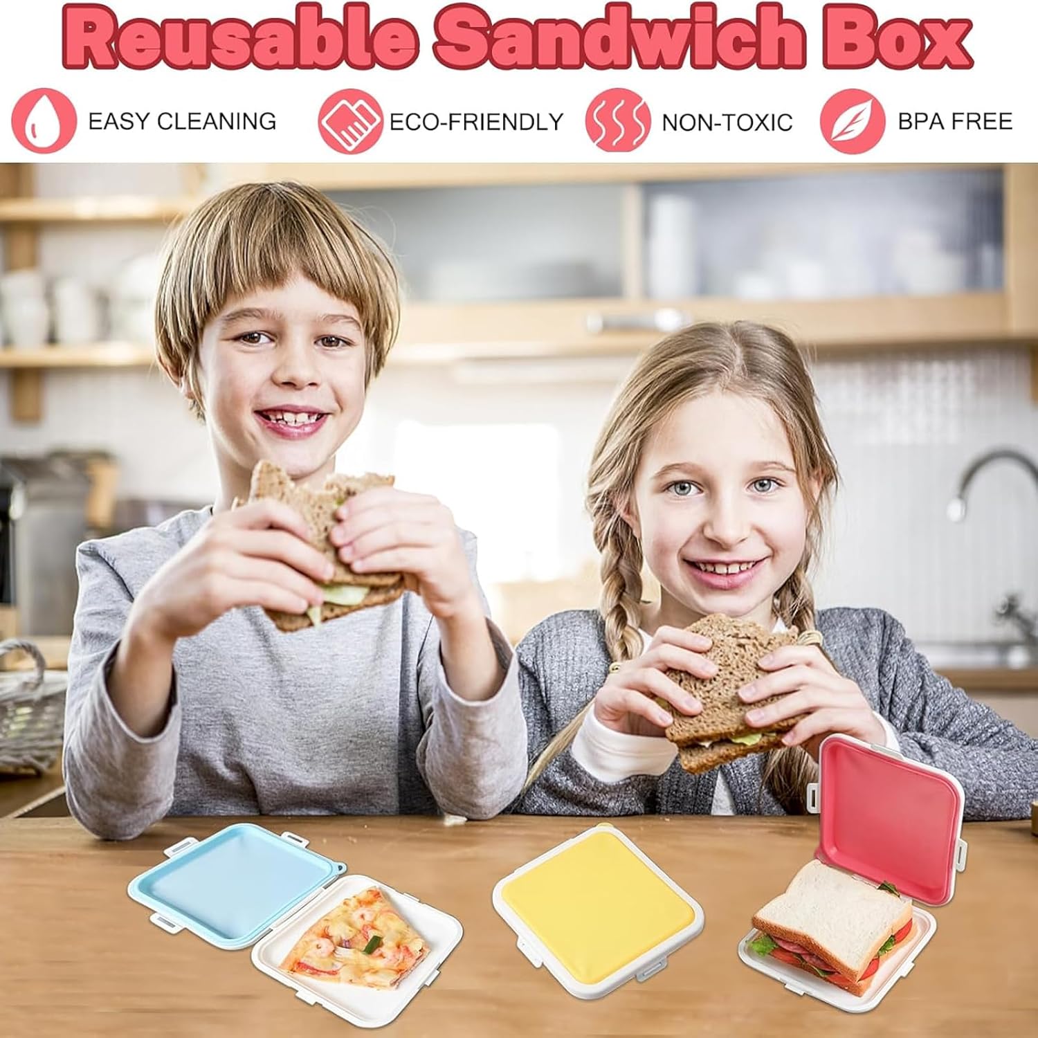 - ππ πππ πππππ πππππππππ - The sandwich container is made of food grade plastic and made of silicone material which is safe, odorless, BPA free and reusable. The sandwich box containers has three snap-on lids for a tight seal and longer freshness.