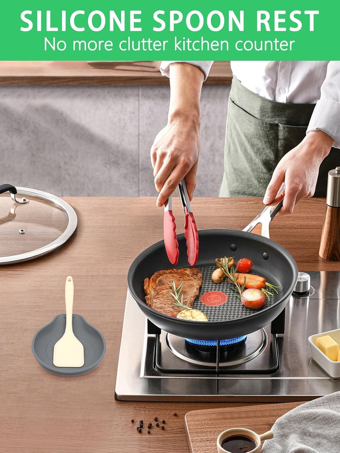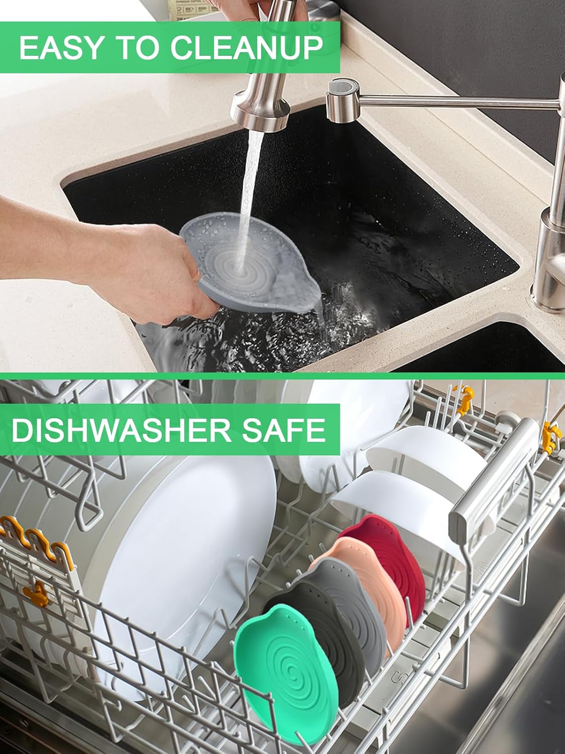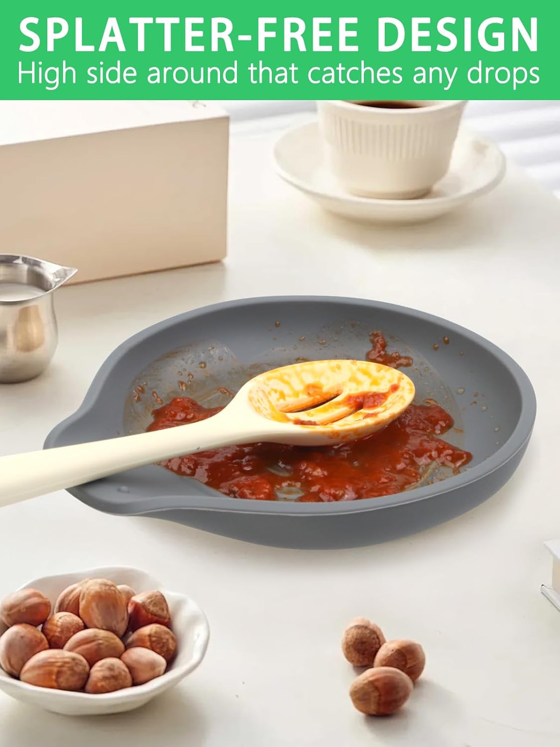 - 【Keep countertops tidy】The kitchen spoon rest's 1 inch deep edges could catch drips easily. And its heat-resistant and anti-slip smooth your cooking. Letting you say goodbye to cluttered counters and hello to a clean, organized and safe kitchen workspace.