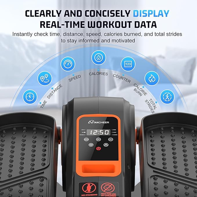• Clear Display for Real-Time Workout Tracking: This ANCHEER ellipse leg exerciser as seen on tv that it features a built-in high-definition display that tracks and shows your workout data in real-time. Time, distance, speed, calories burned, and total laps are clearly displayed, helping you better monitor and adjust your exercise plan for optimal fitness results
