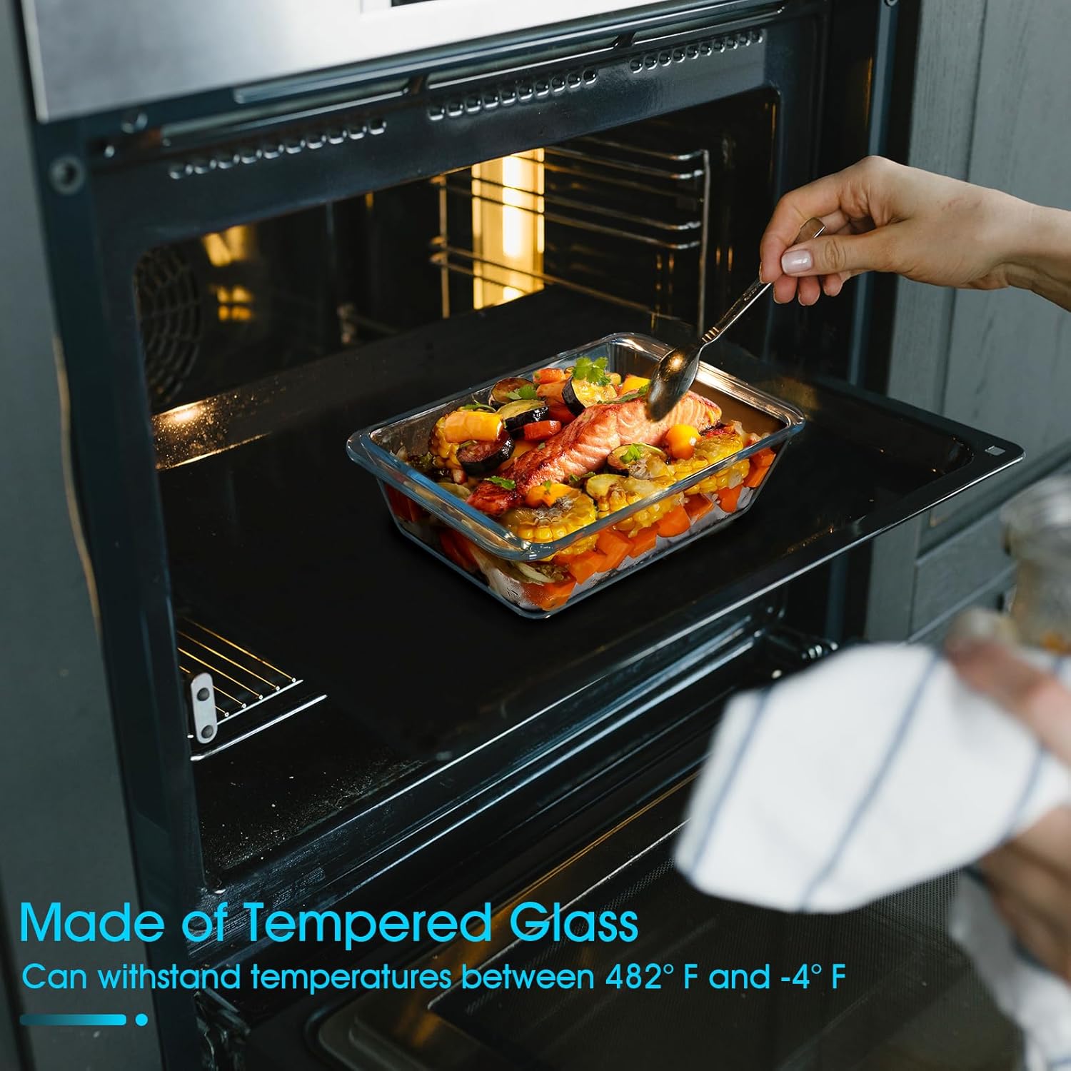 - 【Safe for Your Family】One of the biggest benefits of baking, cooking, and storing foods and liquids in glass is that it’s nonporous. Never worry about food, germs, smells or any nasty chemicals seeping into these glass baking dish. It is one of the most hygienic kitchenware you can use.