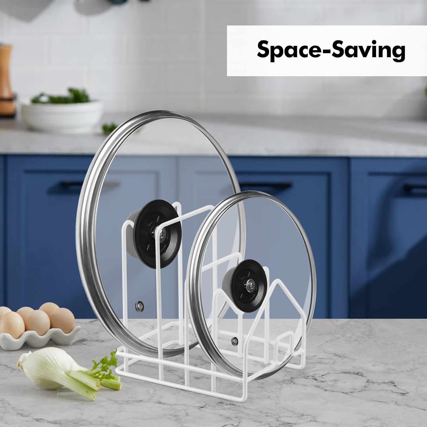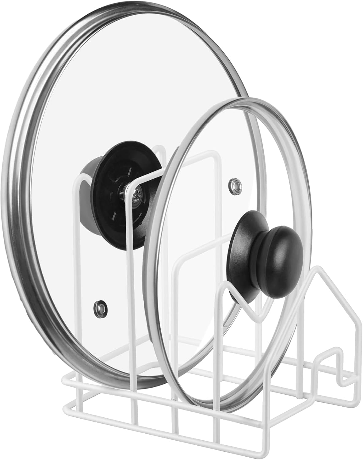 - Convenient and Efficient - With two V-shaped compartments that securely hold pot lids in place, our rack makes it a breeze to find what you need in seconds.