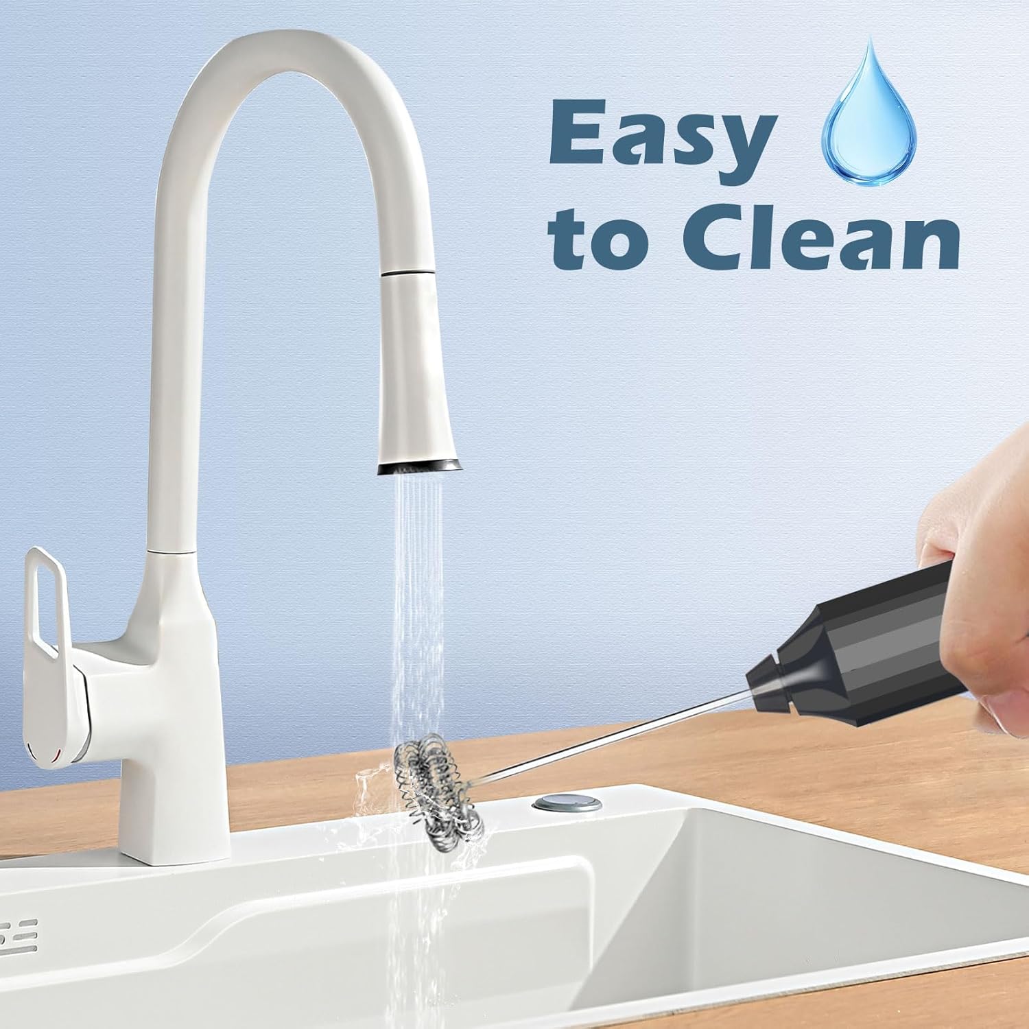 - 【Easy to Use and Clean】: One simple press for creamy froth; Just press the power button once to start frothing, with no need to hold the button down; Relax your hand, enjoy the foaming process, and whip the milk to your desired consistency. The electric whisk with stainless steel head is detachable for quick rinsing. No hassle, no mess!