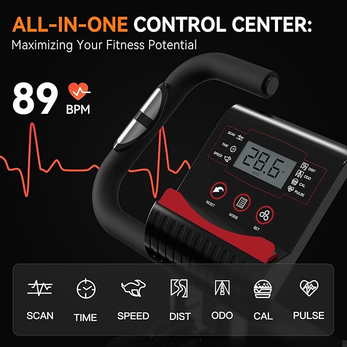 • SAVE SPACE & MOVE EASILY: The portable bike is easily adjustable, allowing for quick folding and upright. Its design enables easy storage in a small area, making it an ideal choice for small apartments or offices. The foldable bike comes with rollers on the front feet, facilitating effortless movement. Whether you're aiming to save space or seeking a portable exercise option, this workout bike for home gym is the ideal solution.