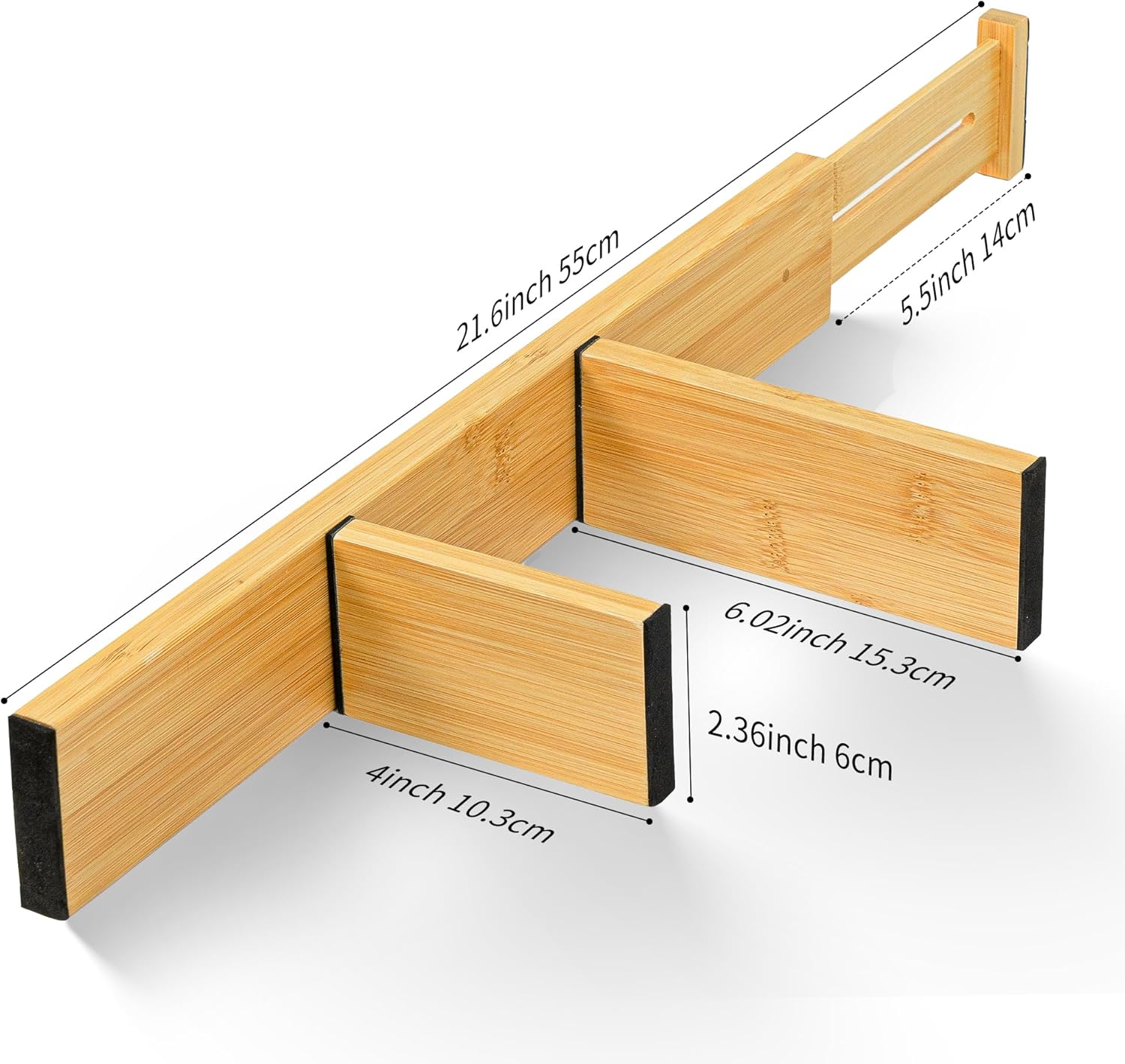 Adjustable Bamboo Drawer Dividers with Inserts, Expandable Spring-Loaded Drawer Organizer for Kitchen, Clothes, Tools, Silverware, Bamboo Organizer Separators - 6 Large Pieces