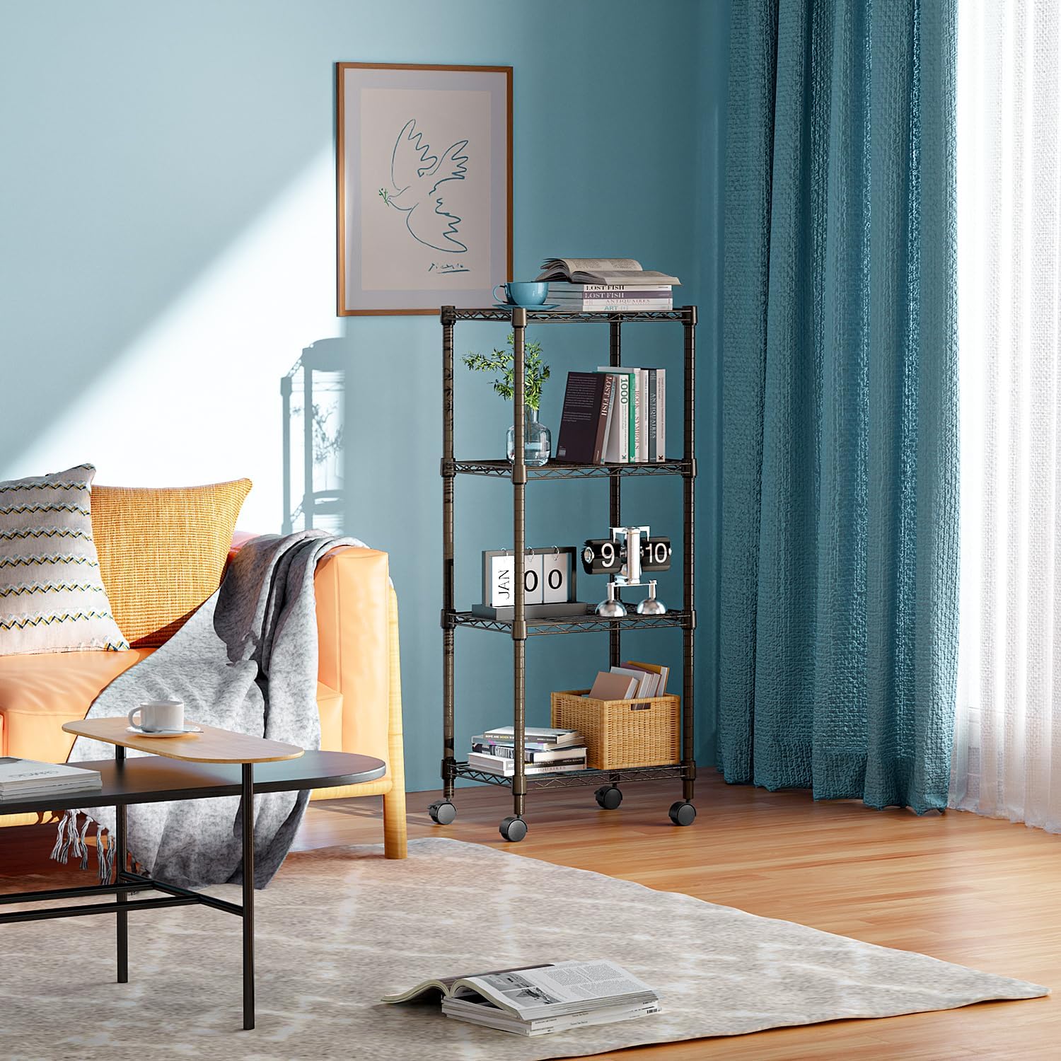 - VERSATILE DESIGN: The shelving units offer incredible versatility. It is suitable for use in a garage, balcony, pantry, and kitchen. Four 360° rotatable wheels ensure its flexibility and can be easily moved around. Its special coating ensures water resistance, making it accommodated for humid environments like bathrooms