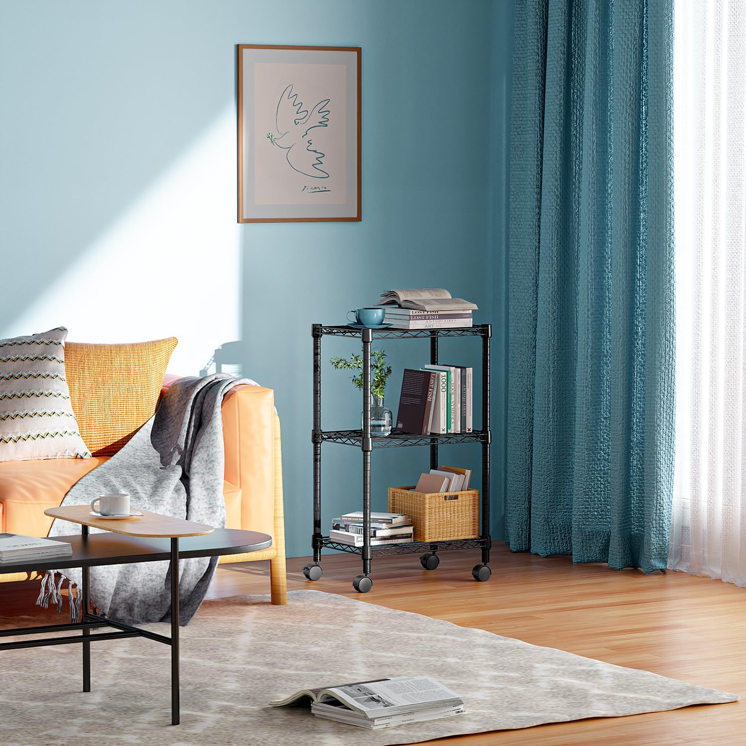 3 Tier Shelf Metal Storage Shelves Wire Rack Closet Organizers with Wheel for Garage Kitchen Bathroom Laundry Black 11.8" D x 17.7" W x 29.8" H