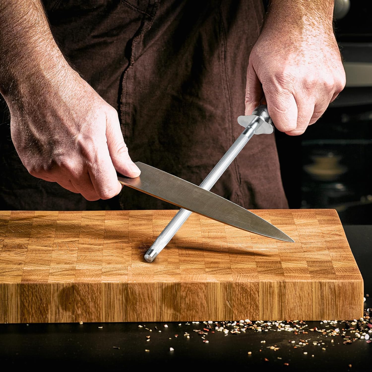 Knife Sharpener Rod, Kitchen Knives Sharpener Carbon Steel Professional Knife Sharpening Steel, Honing Rod with Hanging Holes (13 inches), Y