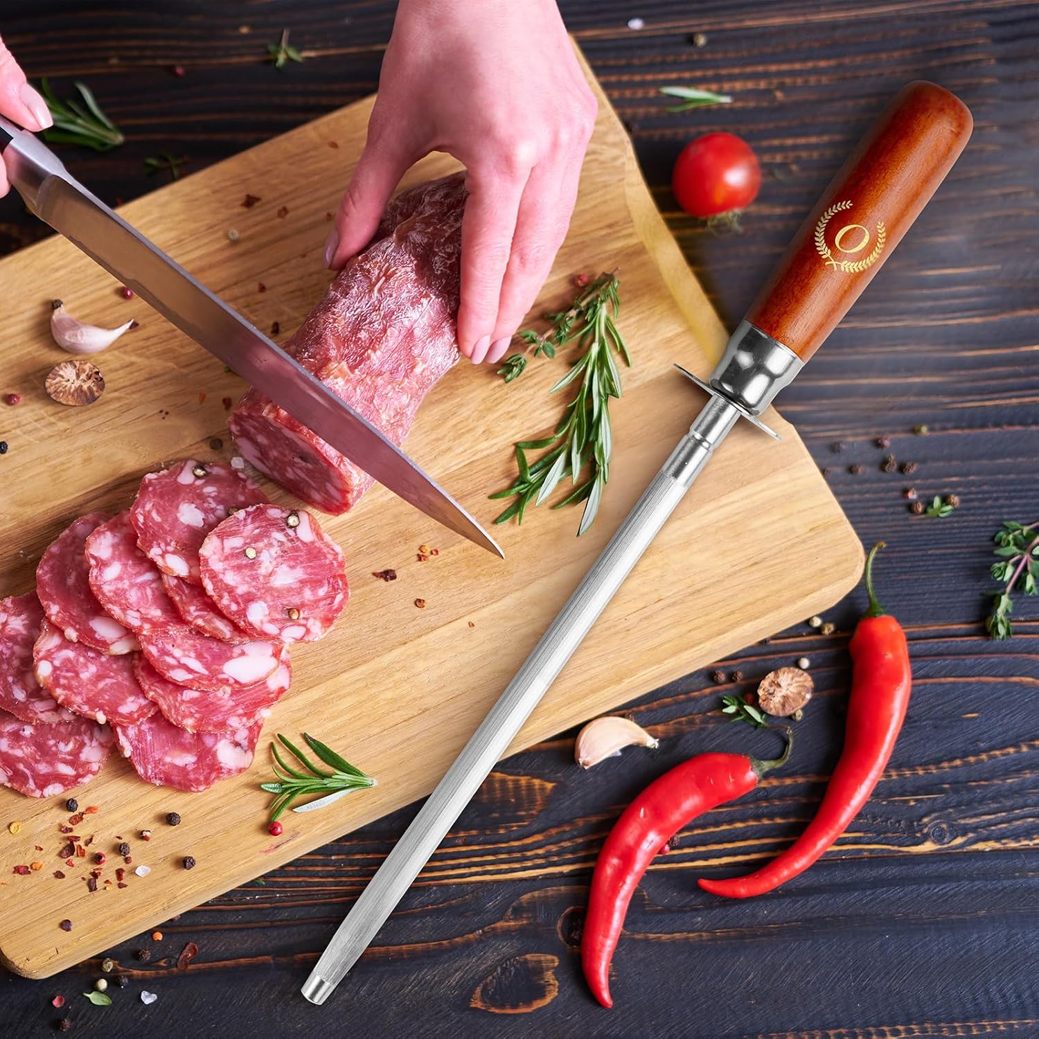 Knife Sharpener Rod, Kitchen Knives Sharpener Carbon Steel Professional Knife Sharpening Steel, Honing Rod with Hanging Holes (13 inches), O