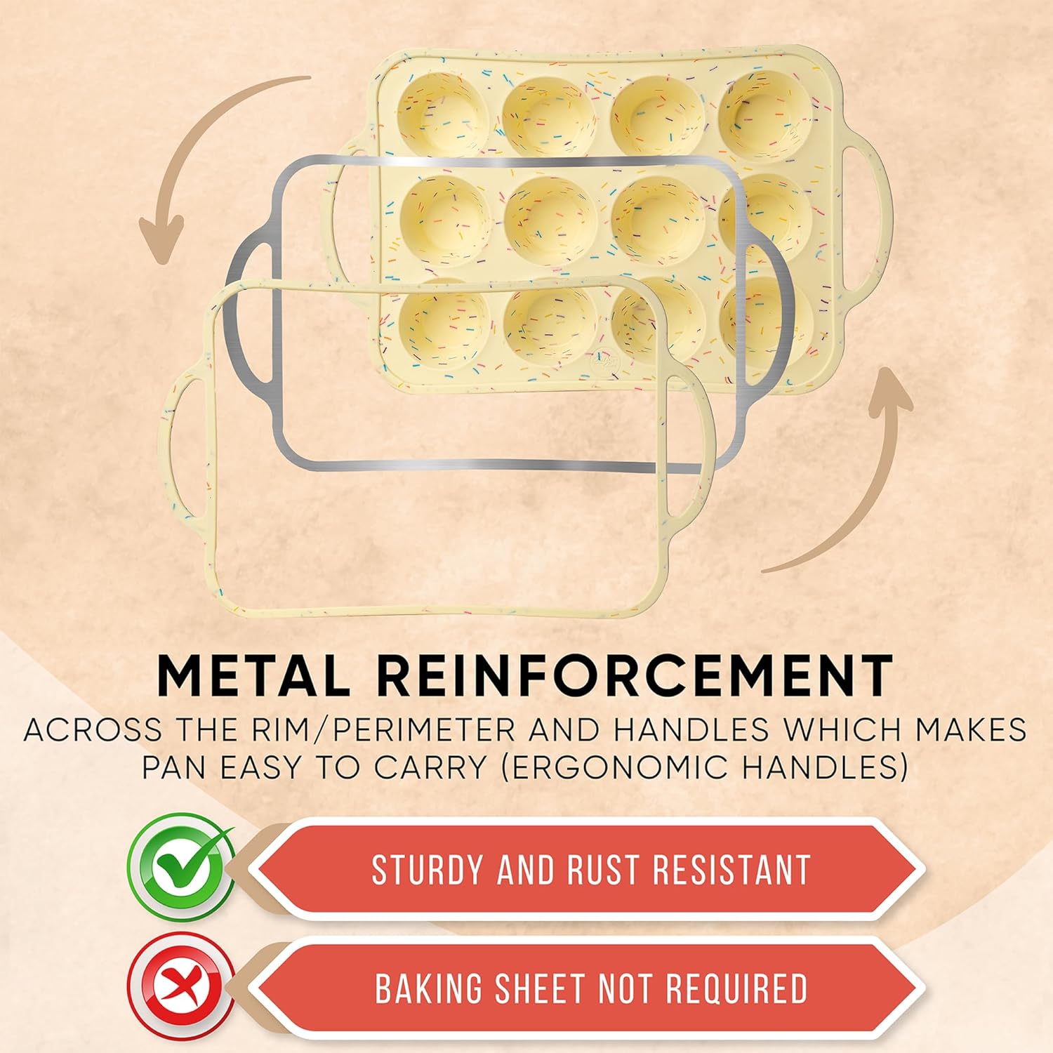 Silicone Mini Muffin Pan 12 Count – Non-Stick Muffin Pans for Baking, BPA-Free Silicone Cupcake Pans for Baking, Easy Release, Metal Handles, Oven & Dishwasher Safe